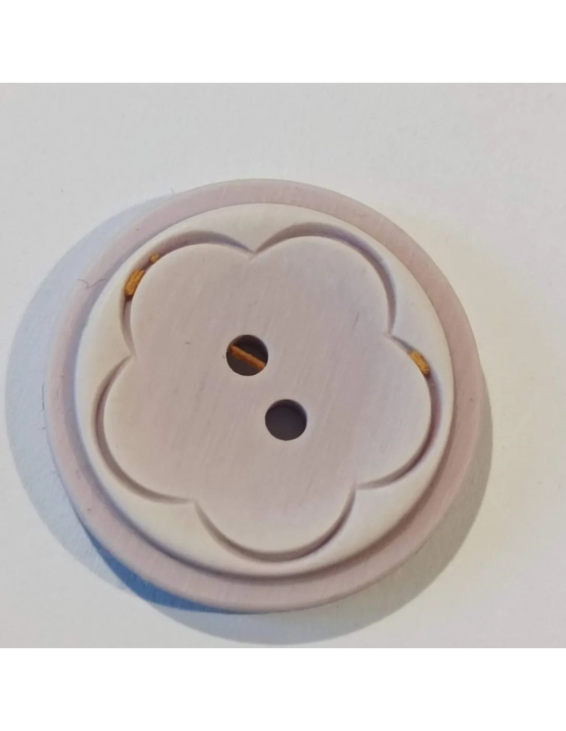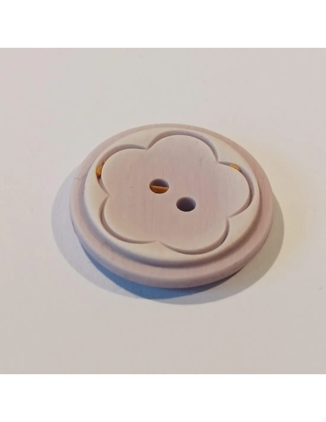 Bouton polyester 2 trous, 23mm, rond, fleur, violet clair