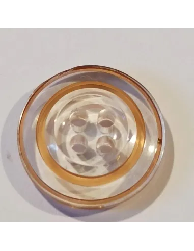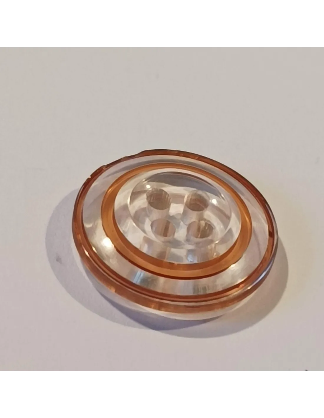 Bouton polyester 4 trous,18mm, rond, transparent rose/marron