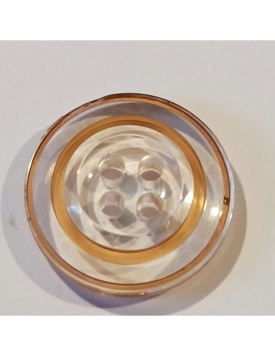 Bouton polyester 4 trous,18mm, rond, transparent  rose/marron