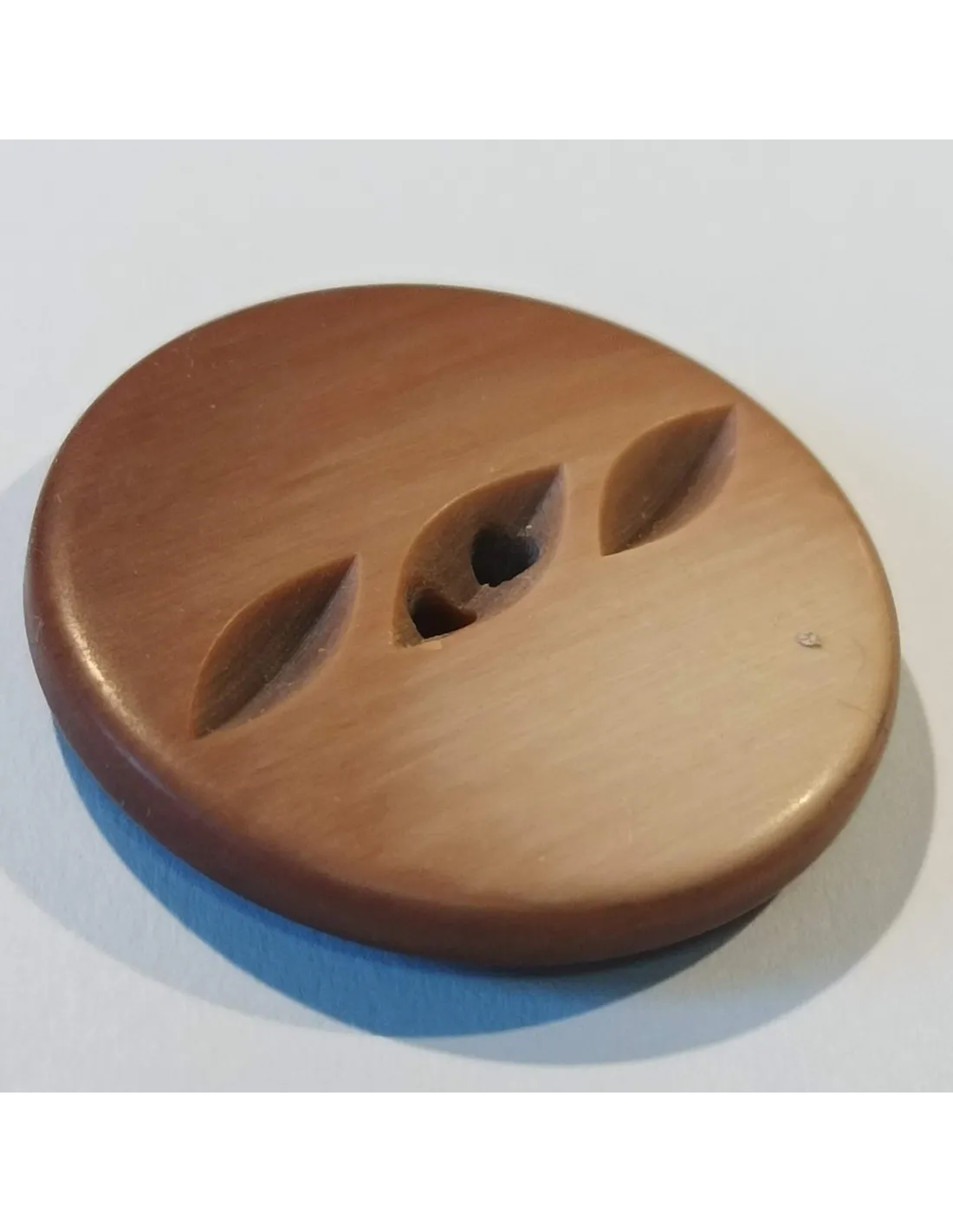 Bouton polyester 2 trous,18mm, rond, marron/rose