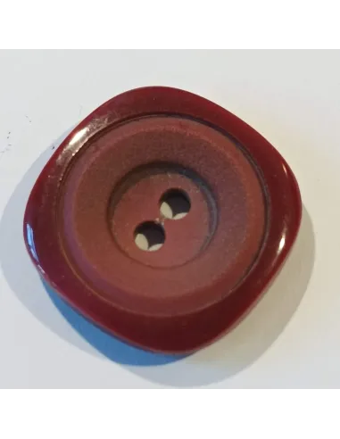 Bouton polyester 2 trous, 25mm, carré, rond bordeaux