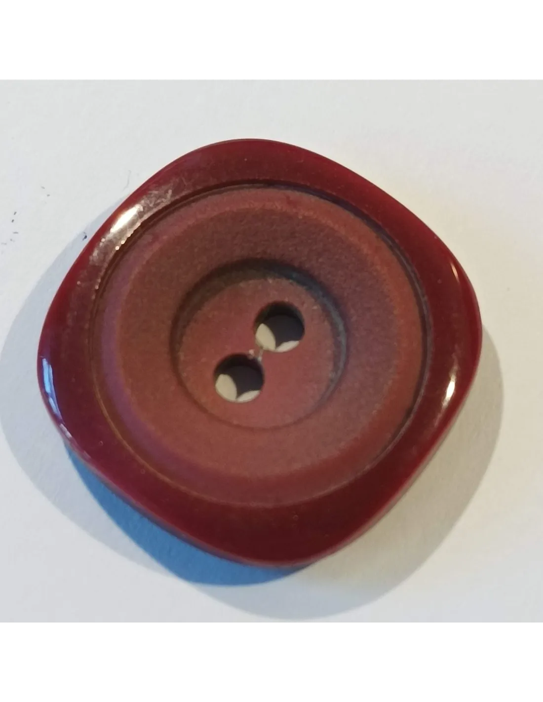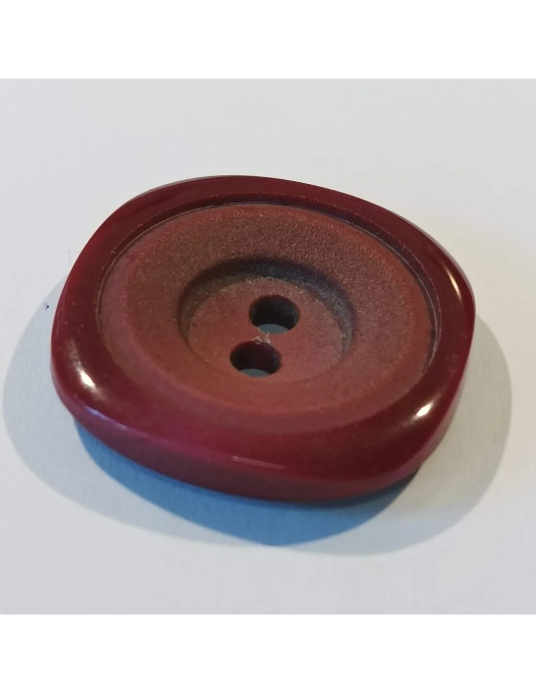 Bouton polyester 2 trous, carré, rond bordeaux