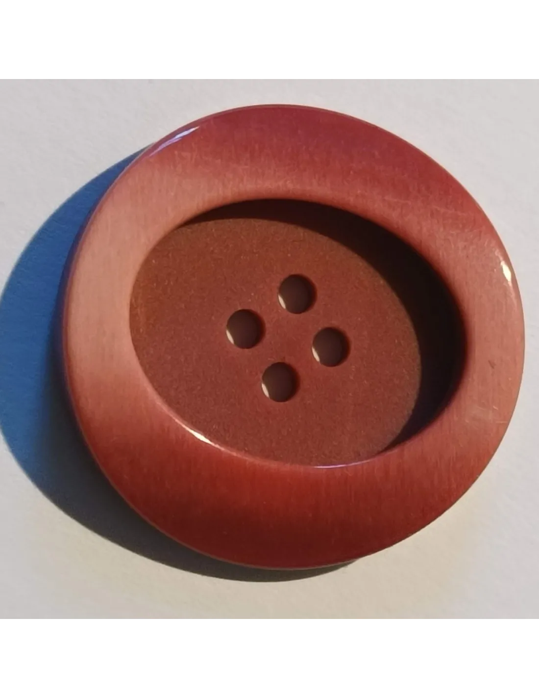 Bouton polyester 4 trous, 27mm, rond rouge/rose