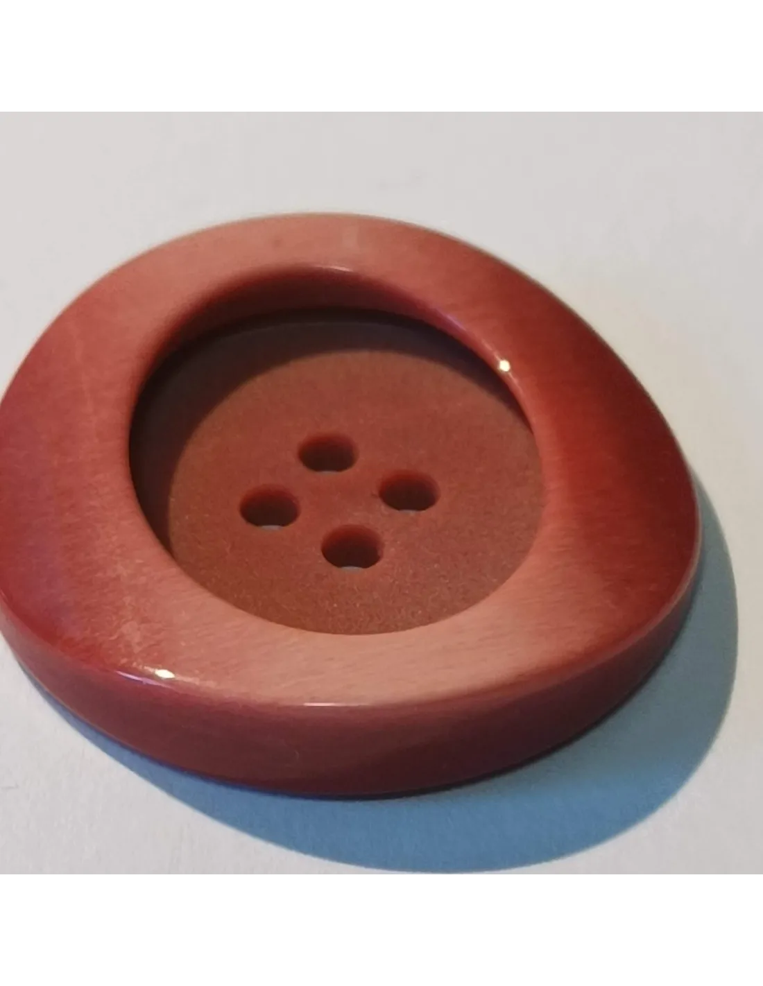 Bouton polyester 4 trous, rond, rouge/rose