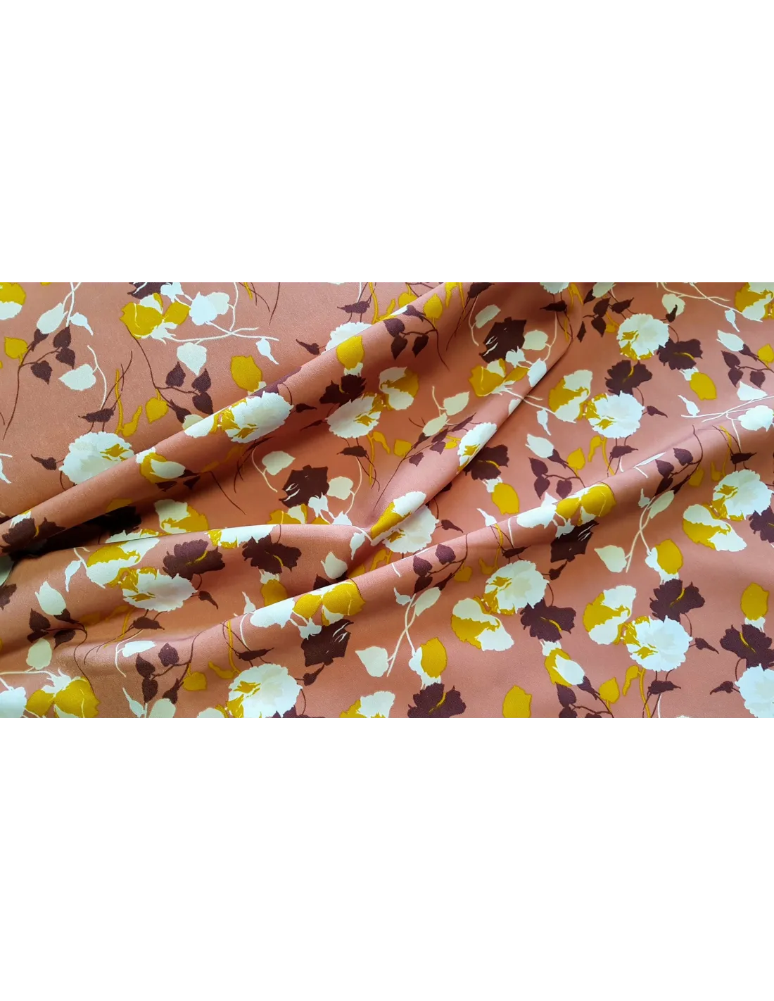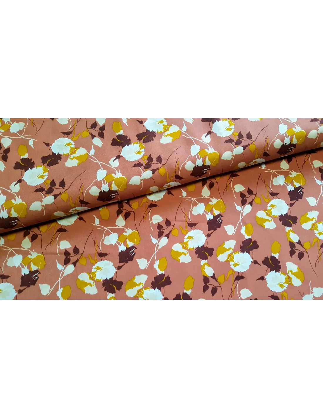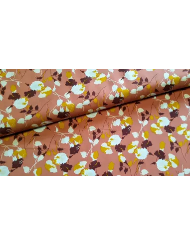 Jolie tissu microfibre légère fleurie sur fond vieux rose