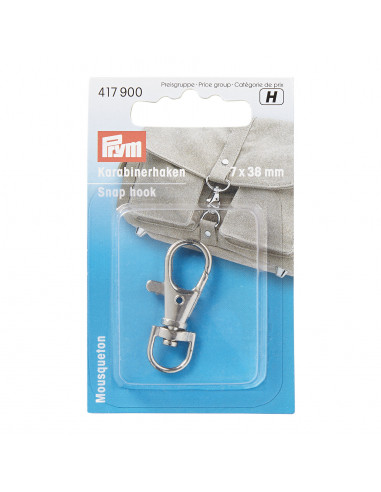 Le mousqueton de Prym séduit par son aspect attrayant et est particulièrement polyvalent. Il est donc approprié pour une fixation facile des anses pour sac à main ou sert de fermeture pour sacs cousus à la main, sacs à dos, pochettes, sacs de sport, sacs à couches et bien plus encore. Grâce à ses formes arrondies, il est également utilisé à des fins décoratives, un véritable point de mire p. ex. comme porte-clés élégant. Le mousqueton est en acier inoxydable de haute qualité et convainc par son mécanisme de fermeture fiable, lisse. Sa surface sans bavures est brossée – ainsi le mousqueton en tant que bijou pratique complète toute conception de sac.