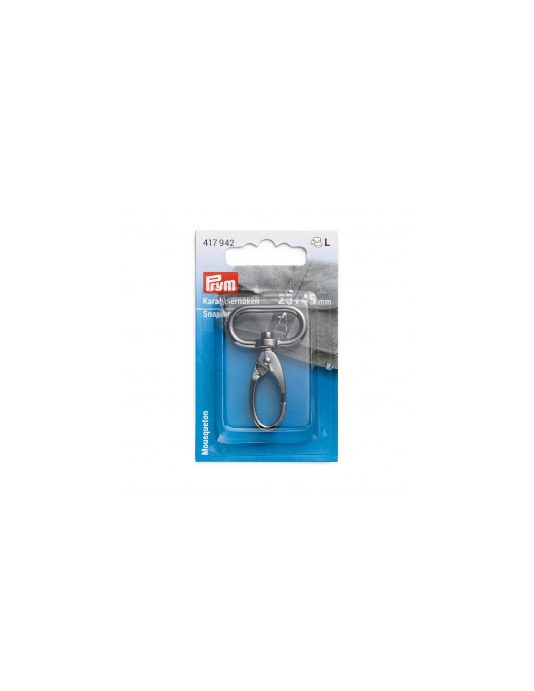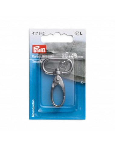 Le mousqueton de Prym séduit par son aspect attrayant et est particulièrement polyvalent. Il est donc approprié pour une fixation facile des anses pour sac à main ou sert de fermeture pour sacs cousus à la main, sacs à dos, pochettes, sacs de sport, sacs à couches et bien plus encore. Grâce à ses formes arrondies, il est également utilisé à des fins décoratives, un véritable point de mire p. ex. comme porte-clés élégant. Le mousqueton est en acier inoxydable de haute qualité et convainc par son mécanisme de fermeture fiable, lisse. Sa surface sans bavures est brossée – ainsi le mousqueton en tant que bijou pratique complète toute conception de sac.