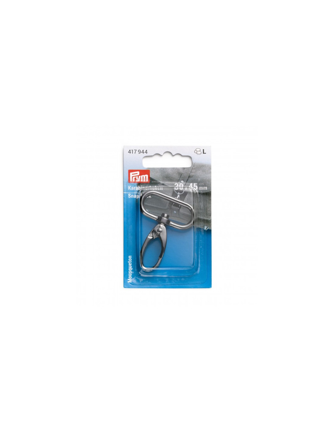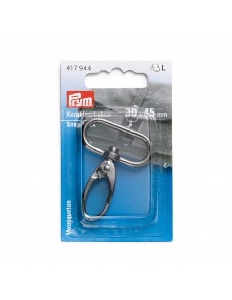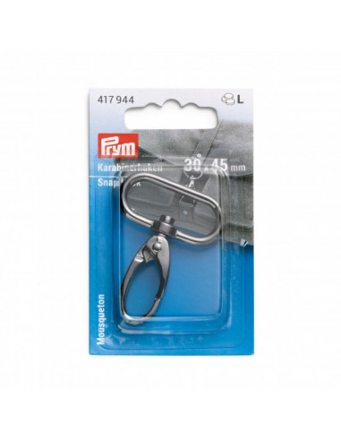 Le mousqueton de Prym séduit par son aspect attrayant et est particulièrement polyvalent. Il est donc approprié pour une fixation facile des anses pour sac à main ou sert de fermeture pour sacs cousus à la main, sacs à dos, pochettes, sacs de sport, sacs à couches et bien plus encore. Grâce à ses formes arrondies, il est également utilisé à des fins décoratives, un véritable point de mire p. ex. comme porte-clés élégant. Le mousqueton est en acier inoxydable de haute qualité et convainc par son mécanisme de fermeture fiable, lisse. Sa surface sans bavures est brossée – ainsi le mousqueton en tant que bijou pratique complète toute conception de sac.