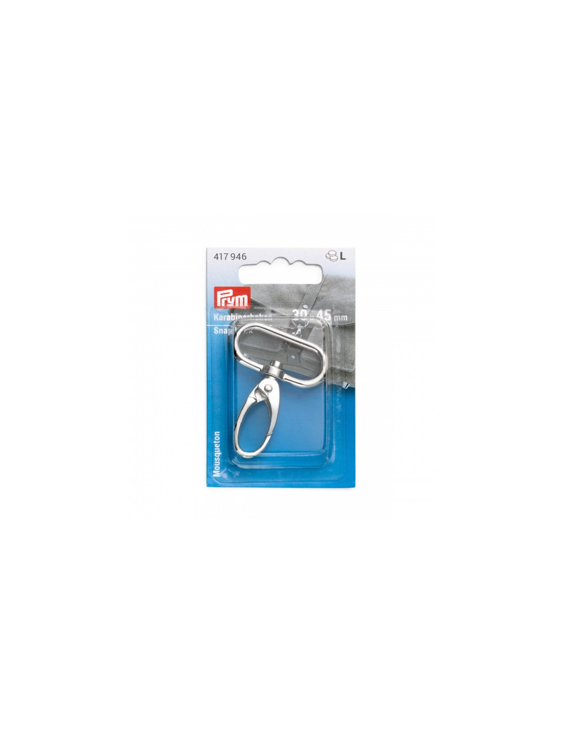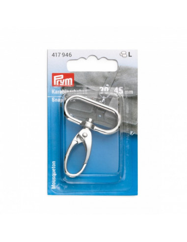 Le mousqueton de Prym séduit par son aspect attrayant et est particulièrement polyvalent. Il est donc approprié pour une fixation facile des anses pour sac à main ou sert de fermeture pour sacs cousus à la main, sacs à dos, pochettes, sacs de sport, sacs à couches et bien plus encore. Grâce à ses formes arrondies, il est également utilisé à des fins décoratives, un véritable point de mire p. ex. comme porte-clés élégant. Le mousqueton est en acier inoxydable de haute qualité et convainc par son mécanisme de fermeture fiable, lisse. Sa surface sans bavures est brossée – ainsi le mousqueton en tant que bijou pratique complète toute conception de sac.