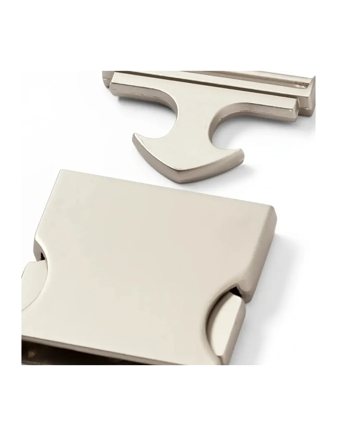 Cette boucle de ceinture rectangulaire séduit par son design simple, attrayant et elle est parfaitement adaptée pour la ceinture fait maison en tissu, cuir ou en sangles. Elle est bien valorisée par le métal finement brossé, argenté et est composée de deux parties. La fermeture enfichable s’enclenche parfaitement par sa forme en flèche dans la plaque réceptrice – deux encoches circulaires sur la plaque réceptrice facilitent l'ouverture et la fermeture. D’une hauteur de 7 mm, elle a une finition plate qui ne se lève à peine. La boucle peut être cousue pour les boucles de ceinture par deux encoches à coudre. Elle a une finition de haute qualité – ainsi la boucle se ferme toujours de manière fiable même avec une utilisation prolongée. En combinaison avec les élastiques et sangles colorés, des ceintures originales peuvent être réalisées ici.