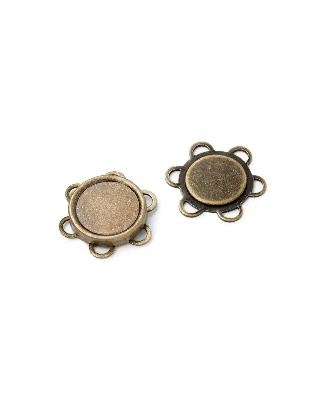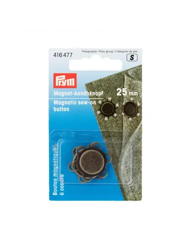 Les boutons à coudre magnétiques au diamètre de 19 mm ou 25 mm sont parfaitement appropriés comme fermoirs de sacs et de pochettes. La plaque magnétique et la plaque métallique disposent chacune de deux trous qui permettent de coudre discrètement les boutons sur le matériau. Ils sont dorés, argentés ou en laiton antique, disponibles par 3 pièces et peuvent être lavés jusqu'à 60 degrés. Les boutons magnétiques robustes supportent même le sèche-linge et le fer à repasser.