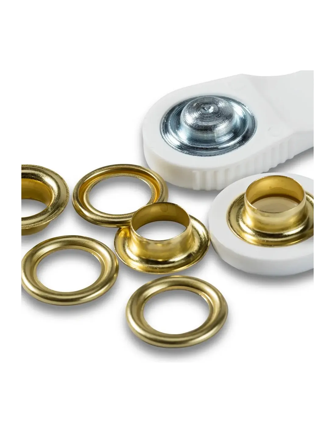 Des œillets pratiques en quantités et diamètres différents pour les amoureux de la couture et du bricolage ! Disponibles au choix, dans les coloris argent, or, laiton antique ou bronze, les œillets se posent facilement grâce à l’outil fourni et à un marteau. Ils permettent une finition impeccable, sans déformation et sans endommagement du matériau. Les œillets en laiton inoxydable sont polyvalents et peuvent être utilisés sur des rideaux comme sur des bâches. Ils n’ont pas de disques d'extrémité sur l’envers.
