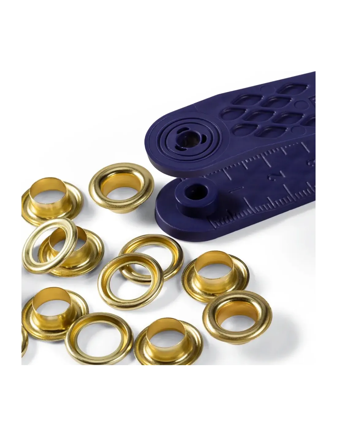 Des œillets pratiques en quantités et diamètres différents pour les amoureux de la couture et du bricolage ! Disponibles au choix, dans les coloris argent, or, laiton antique ou bronze, les œillets se posent facilement grâce à l’outil fourni et à un marteau. Ils permettent une finition impeccable, sans déformation et sans endommagement du matériau. Les œillets en laiton inoxydable sont polyvalents et peuvent être utilisés sur des rideaux comme sur des bâches. Ils n’ont pas de disques d'extrémité sur l’envers.