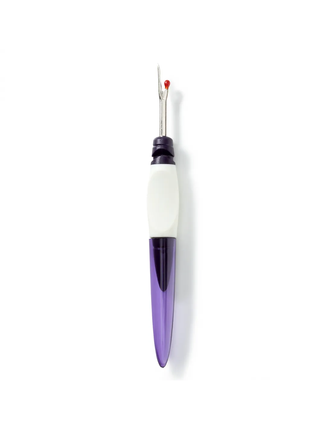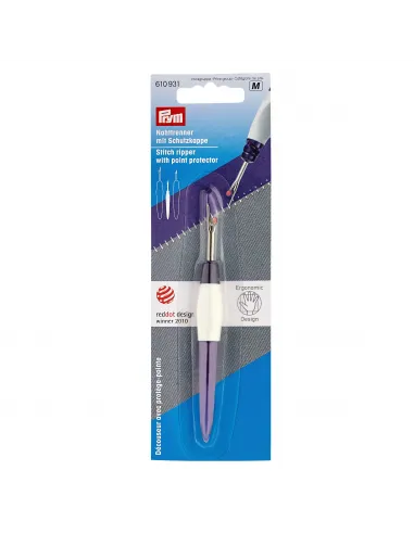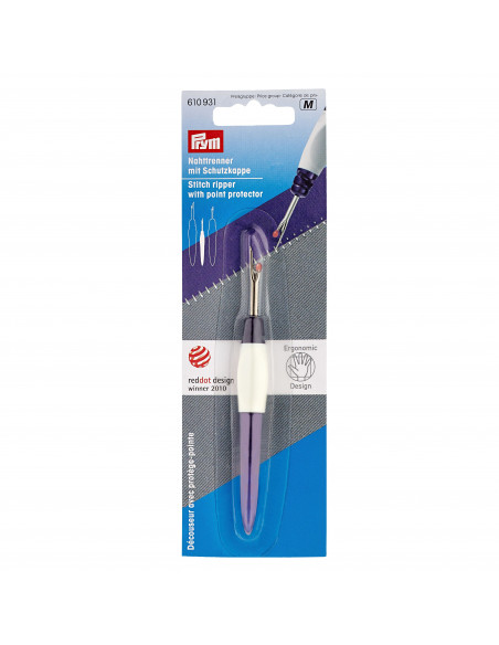 Tranchant et maniable, telles sont les caractéristiques du découseur de la gamme prym.ergonomics de Prym. Idéal pour découdre les fils, le découseur avec sa lame tranchante et sa pointe à boule convainc tout particulièrement grâce à sa poignée ergonomique. Mous et antidérapants, les creux de saisie permettent de travailler longtemps sans fatigue. Un découseur robuste de la Marque Prym qui, en plus d’un design attrayant, se distingue par une très bonne prise en main et une sécurité assuré par un capuchon de protection. Vous pouvez placer le capuchon de protection à l’arrière du découseur pour en rallonger la poignée. Le découseur de Prym peut également être suspendu. Découseur pratique dont l’ergonomie convainc les débutants comme les professionnels.