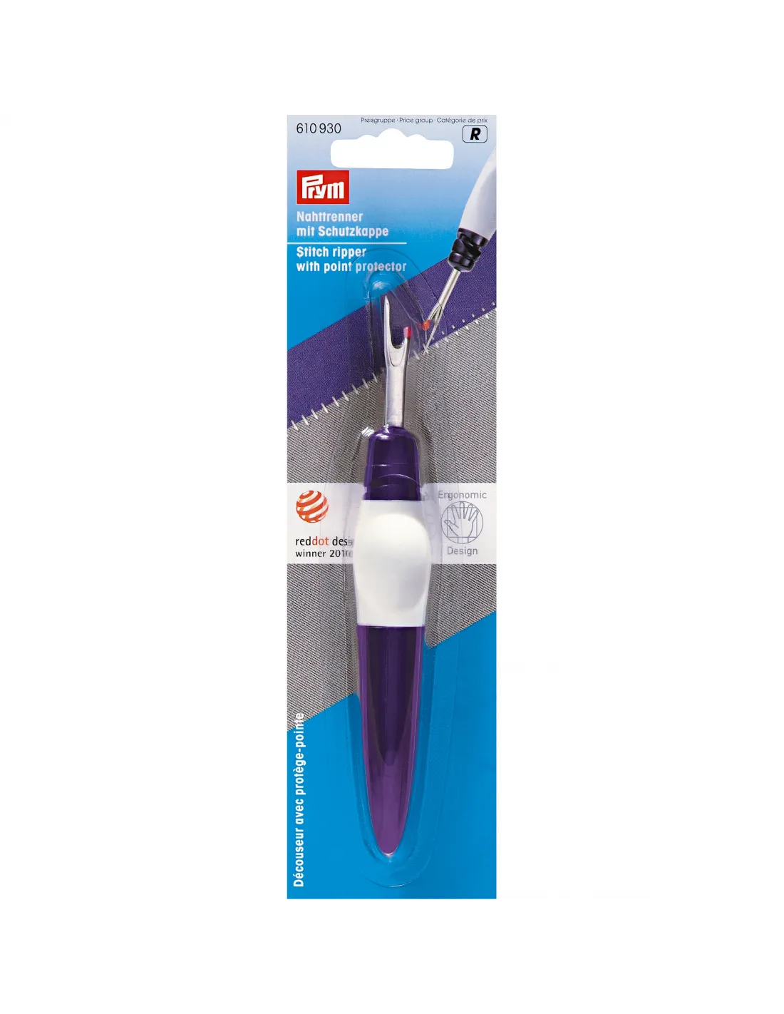 Tranchant et maniable, telles sont les caractéristiques du découseur de la gamme prym.ergonomics de Prym. Idéal pour découdre les fils, le découseur avec sa lame tranchante et sa pointe à boule convainc tout particulièrement grâce à sa poignée ergonomique. Mous et antidérapants, les creux de saisie permettent de travailler longtemps sans fatigue. Un découseur robuste de la Marque Prym qui, en plus d’un design attrayant, se distingue par une très bonne prise en main et une sécurité assuré par un capuchon de protection. Vous pouvez placer le capuchon de protection à l’arrière du découseur pour en rallonger la poignée. Le découseur de Prym peut également être suspendu. Découseur pratique dont l’ergonomie convainc les débutants comme les professionnels.