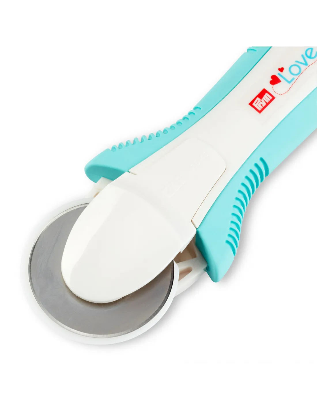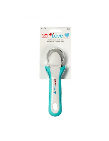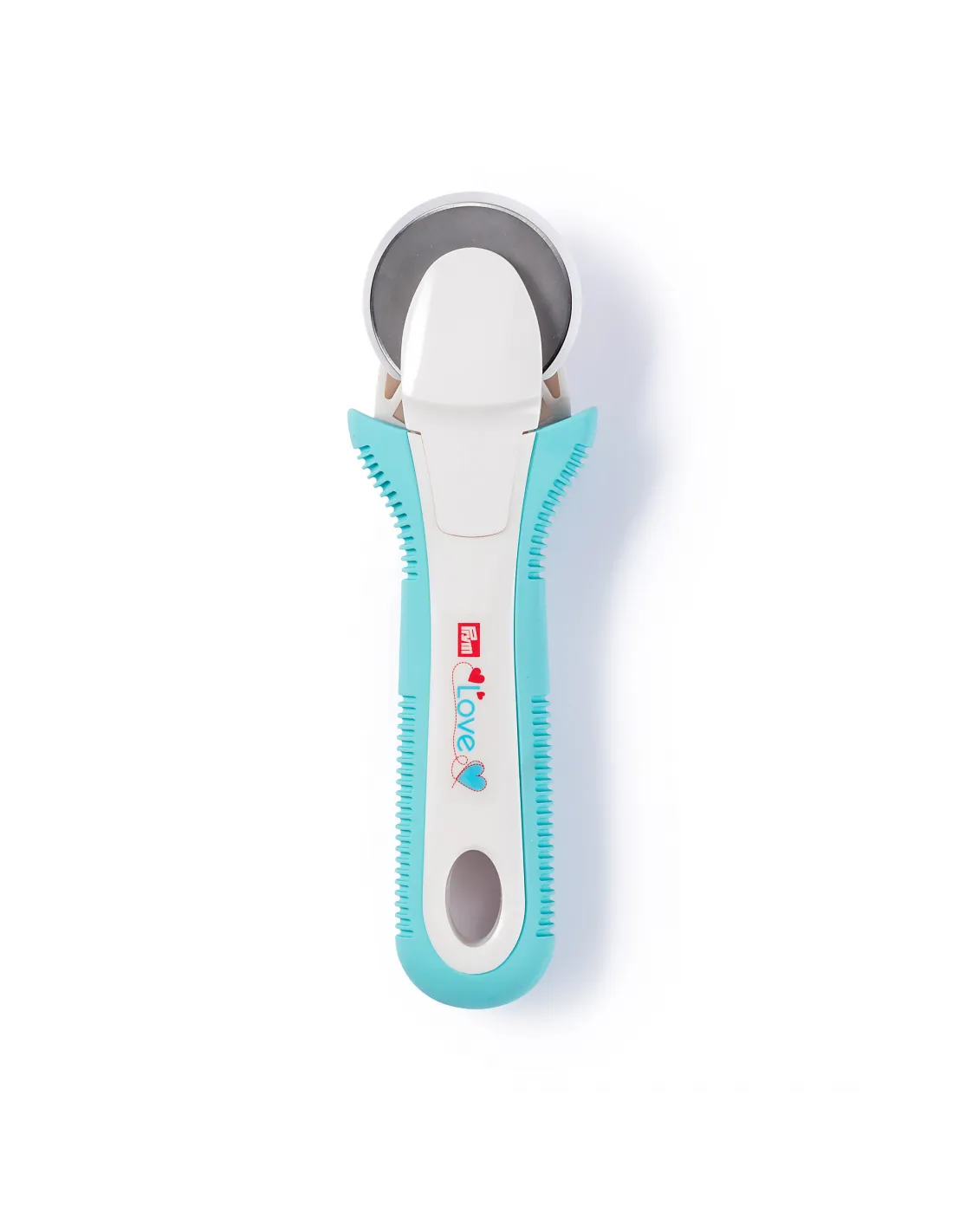 Disponible dans les coloris gais typiques de la gamme « Prym Love » : le couteau rotatif « Prym Love » est très esthétique et met de la couleur dans tous les ateliers de couture. Mais il séduit également par sa fonctionnalité. En plus des lames tranchantes permettant de couper plusieurs couches de tissu, il offre la possibilité de régler la résistance de coupe en fonction de l'épaisseur du tissu. Le système de sécurité breveté constitue un autre de ses points forts : la protection des lames se retire automatiquement lorsqu'on exerce une pression sur les lames. Lorsque la lame n’est pas utilisée, la protection se glisse à nouveau sur le couteau. Grâce à sa poignée souple et ergonomique en caoutchouc, le couteau rotatif ne glisse pas des mains, même en cas de forte pression. Idéal pour les travaux de patchwork, de quilting et de couture.