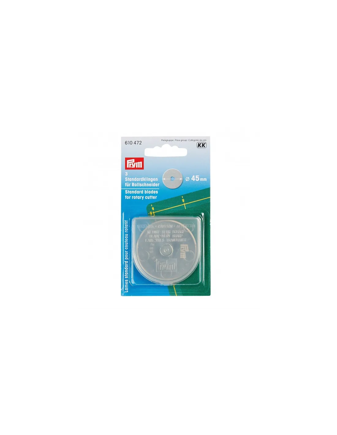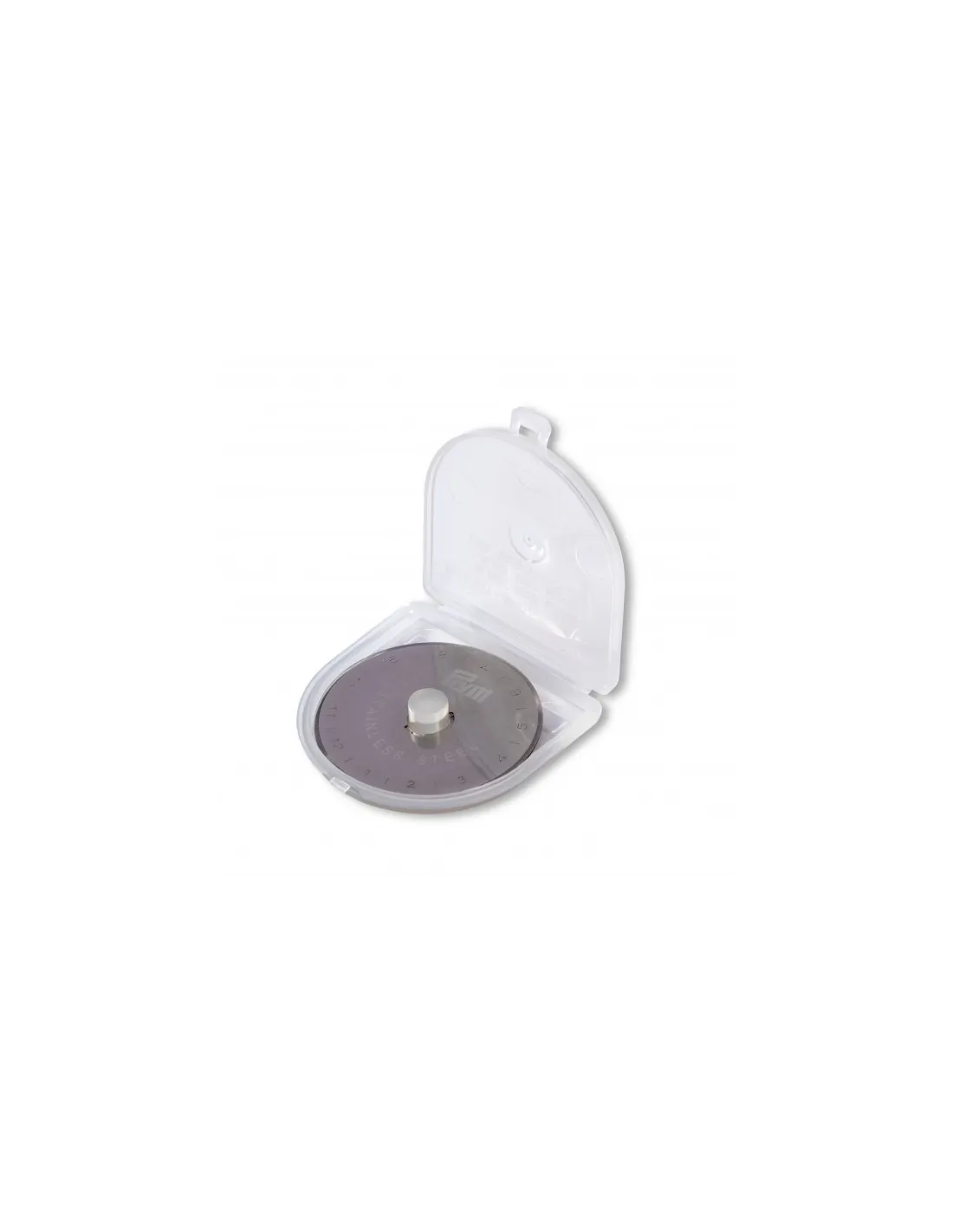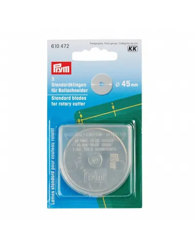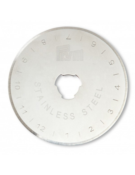 Les lames de rechange sont des lames standard en acier inoxydable haut de gamme disponibles pour tous les couteaux rotatifs de Prym et pouvant être commandées à tout moment. Tout aussi résistantes, les lames ondulées ou dentées s’utilisent avec les couteaux rotatifs Maxi et Maxi Easy, Comfort, Multi et Omnicut de Prym. Ces lames bien emballées doivent être changées régulièrement, car des lames émoussées entraînent de la fatigue, des coupes imprécises et endommagent les tapis de découpe. Lors du changement des lames, il convient d’être prudent, car ces dernières sont extrêmement tranchantes.
