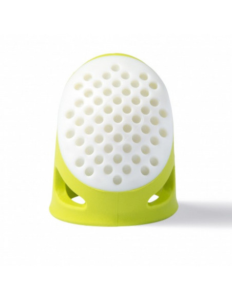 Celui qui croie qu’un simple accessoire de couture comme le dé à coudre ne peut pas être développé, sera agréablement surpris par le « Soft Comfort » de la série prym.ergonomics. Ce dé à coudre innovant a été primé en 2015 avec le Red Dot Design Award car il résume parfaitement tout ce que ses pairs doivent pouvoir faire. Sa tige en plastique souple en différentes couleurs offre un excellent confort de port dans les tailles S, M et L. Quatre fentes d’aération situées sur le côté permettent d’éviter la transpiration lors des travaux longs. Le bout du dé à coudre « Soft Comfort » est en plastique dur blanc et dispose d’encoches en pointillés qui assurent également une conduite parfaite de l'aiguille sur les matériaux solides et sur plusieurs couches.