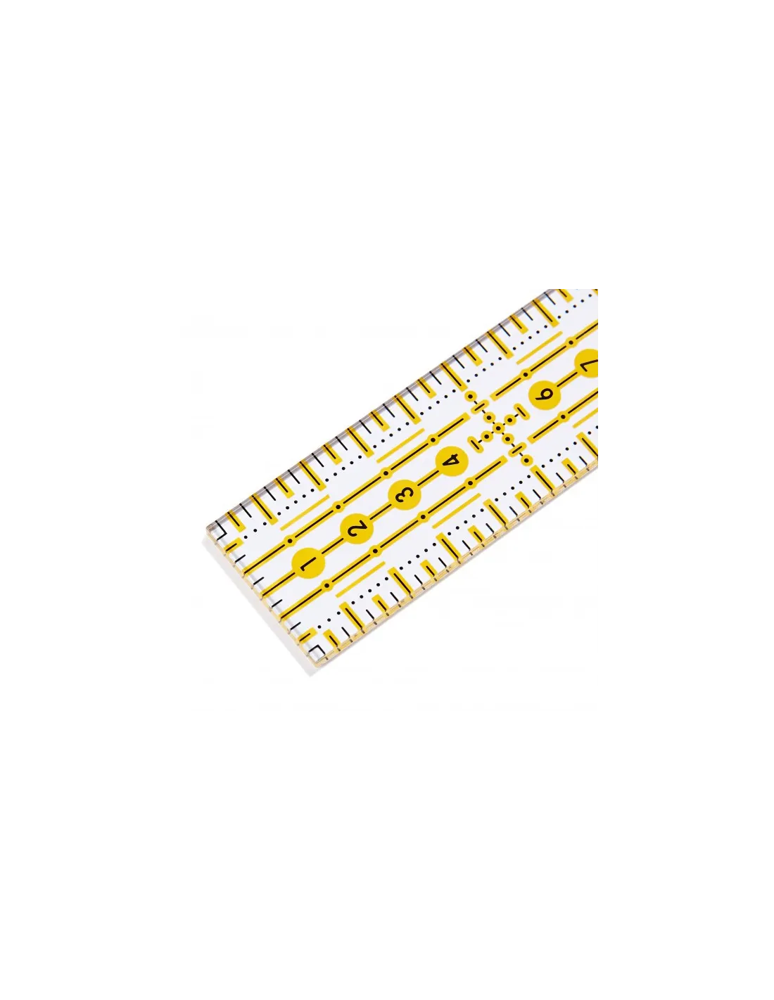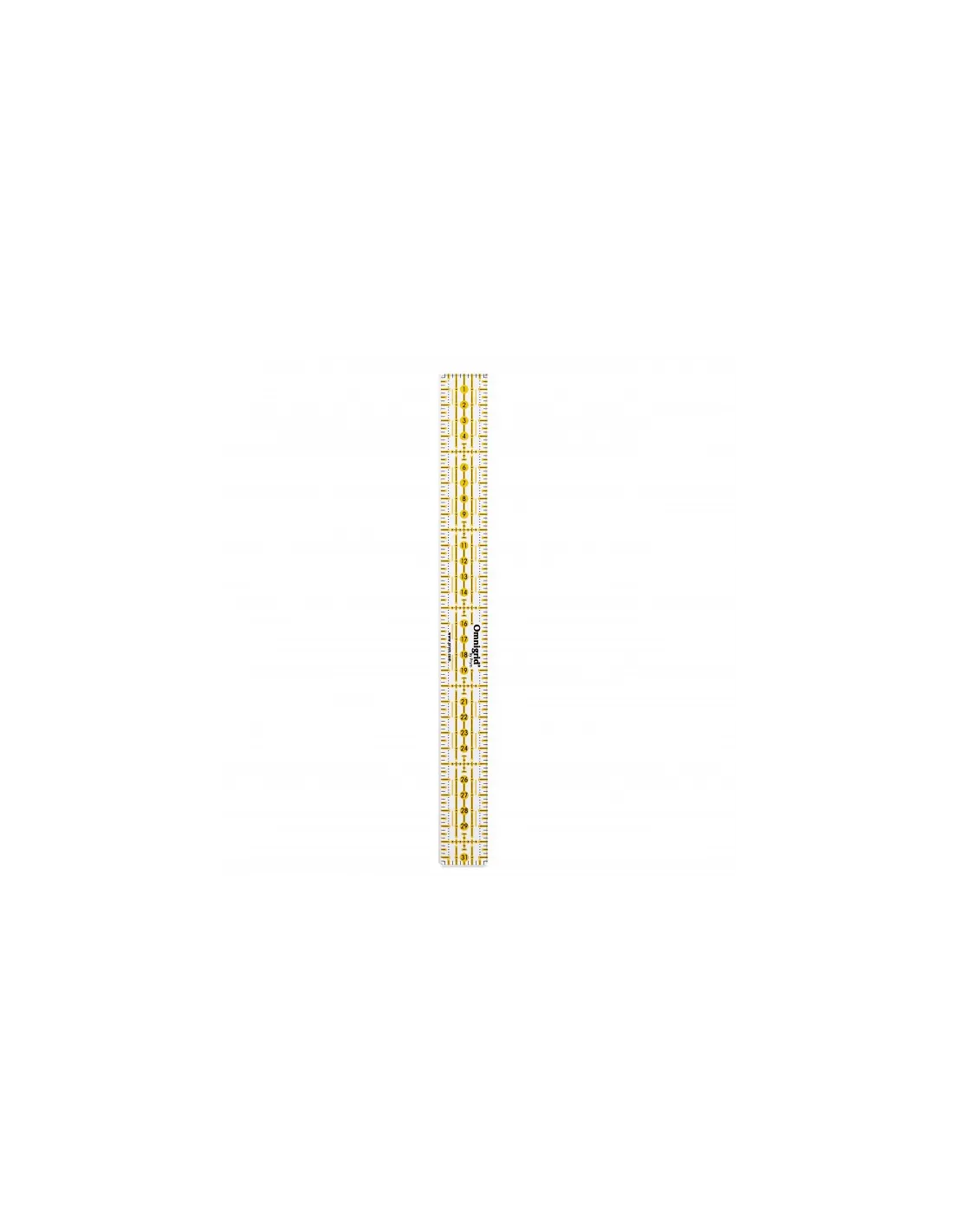 Que ce soit sur la table de découpe ou sur la machine à coudre : Les règles universelles Omnigrid de Prym sont des compagnons indispensables pour les ouvrages de patchwork, de confection ou graphiques. L'impression tramée jaune/noir avec soit une échelle métrique ou en pouces permet des marquages précis aussi bien sur les tissus sombres que clairs. L'impression au laser résistante aux rayures sur la partie inférieure de la règle empêche les distorsions optiques. Le matériau épais, résistant assure le fonctionnement sûr des couteaux rotatifs et des couteaux d’art sur le fonds de découpe. Dans certaines versions, les règles Omnigrid ont également des marquages angulaires de 30, 45 et 60 degrés pour couper des triangles et des losanges ainsi que des bandes diagonales. Un œillet pour accrocher assure également de l'ordre sur le lieu de travail.