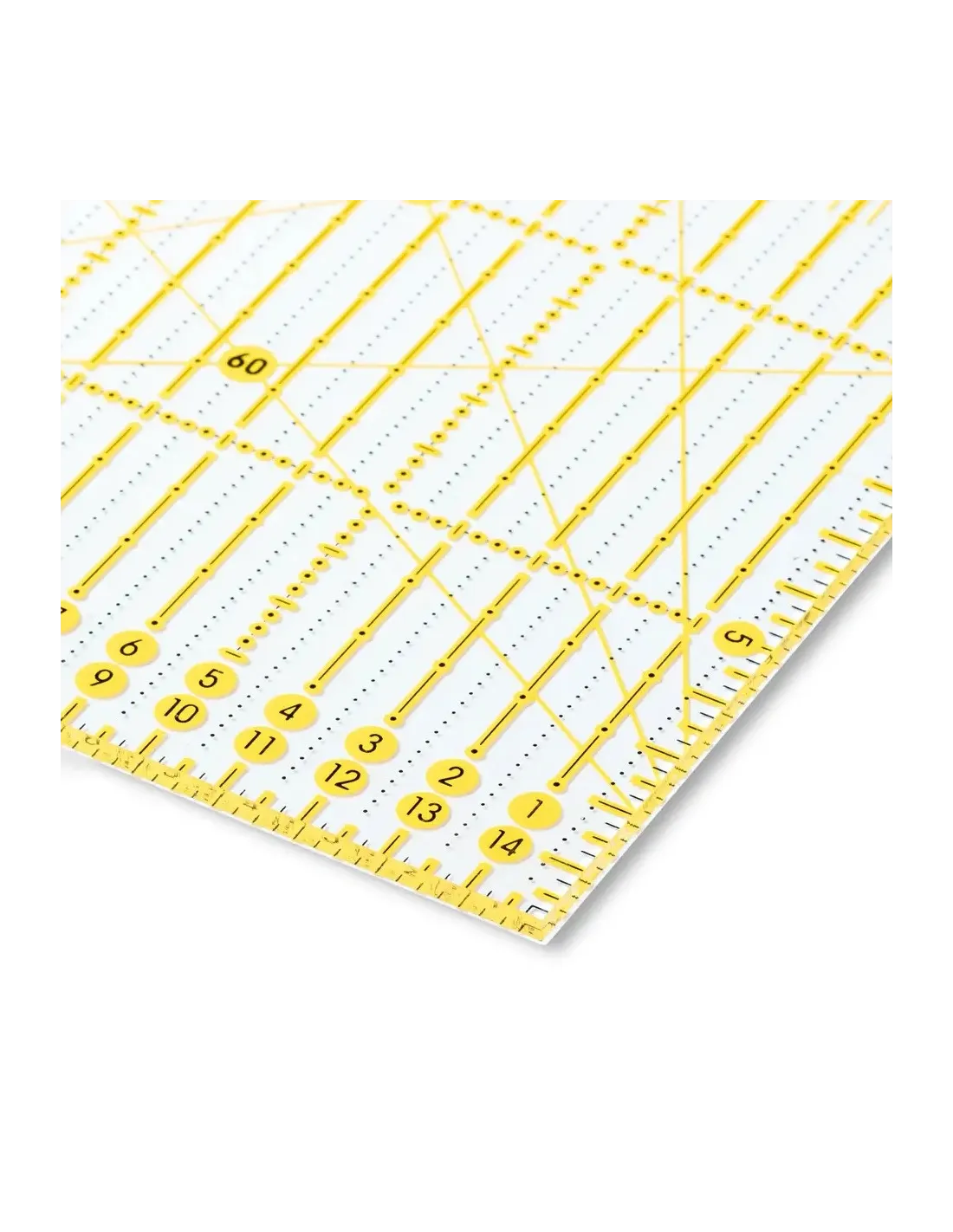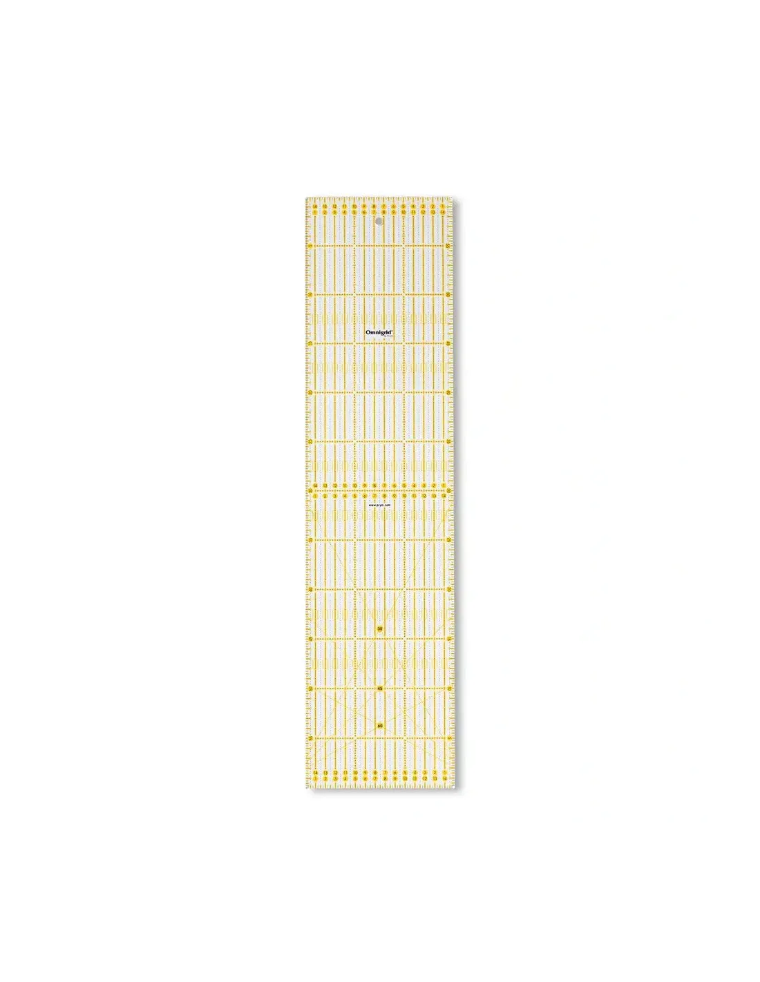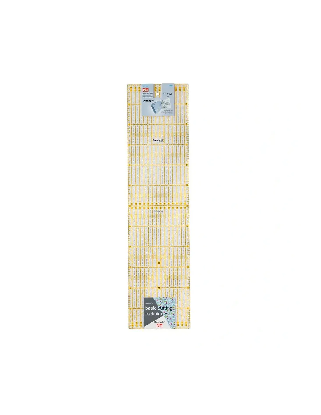 Que ce soit sur la table de découpe ou sur la machine à coudre : Les règles universelles Omnigrid de Prym sont des compagnons indispensables pour les ouvrages de patchwork, de confection ou graphiques. L'impression tramée jaune/noir avec soit une échelle métrique ou en pouces permet des marquages précis aussi bien sur les tissus sombres que clairs. L'impression au laser résistante aux rayures sur la partie inférieure de la règle empêche les distorsions optiques. Le matériau épais, résistant assure le fonctionnement sûr des couteaux rotatifs et des couteaux d’art sur le fonds de découpe. Dans certaines versions, les règles Omnigrid ont également des marquages angulaires de 30, 45 et 60 degrés pour couper des triangles et des losanges ainsi que des bandes diagonales. Un œillet pour accrocher assure également de l'ordre sur le lieu de travail.