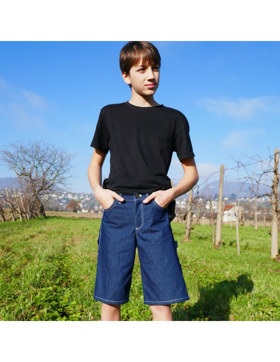 Patron de jean, bermuda ou pantalon cargo pour garçon du 2 au 16 ans.