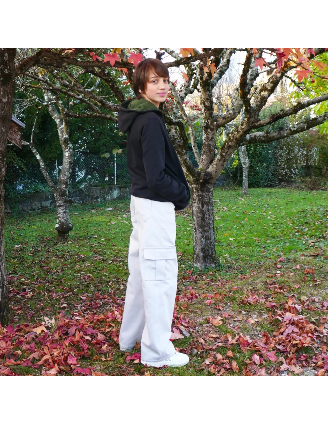braguette zippée et ceinture boutonnée sied mieux aux ados, elle demande plus de minutie. Cette dernière présente des pinces dos, et pour un meilleur ajustement il est possible