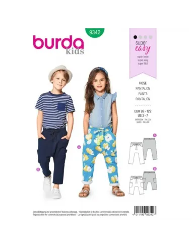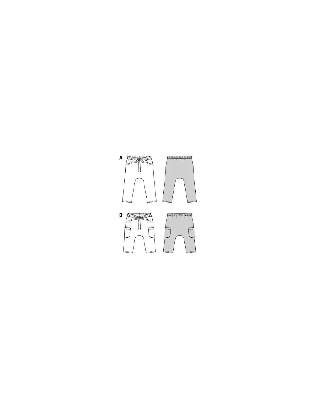 Les pantalons en deux longueurs, destinés autant aux filles qu'aux garçons, se passent de couture milieu. L'entrejambe décontracté, la ceinture montée avec une coulisse à élastique et à cordon ainsi que la matière extensible leur garantissent toute la lib