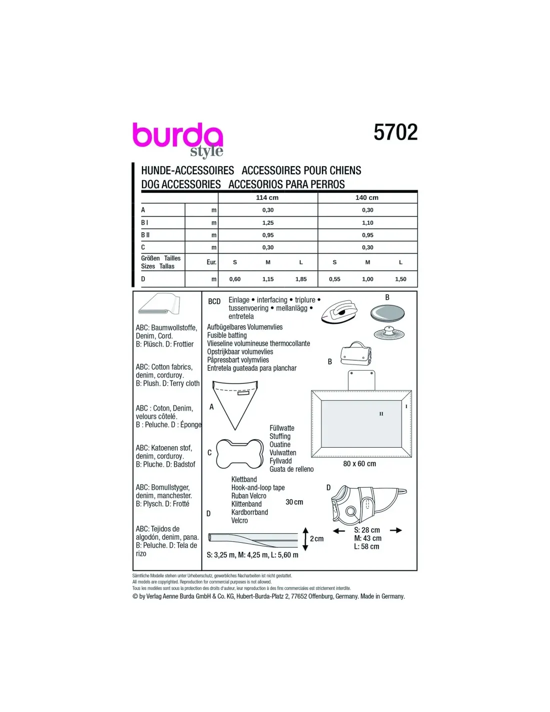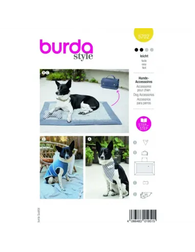 Ce patron pratique pour chien de burda style contient quatre variantes et est parfait pour chaque chien. Le foulard stylé s'adapte à (presque) tous les colliers. La couverture pliable est un compagnon pratique pour tous les voyages et devient un lieu de prédilection douillet à la maison. L'os rembourré est un jouet formidable et le manteau pour chien en tissu éponge est un compagnon idéal pour toutes les sorties de bain !