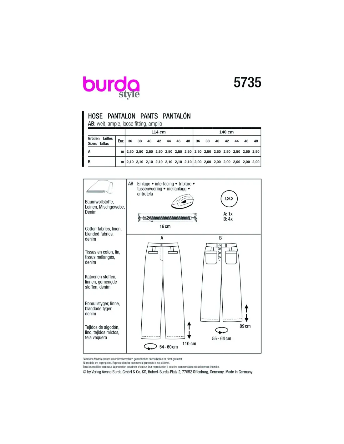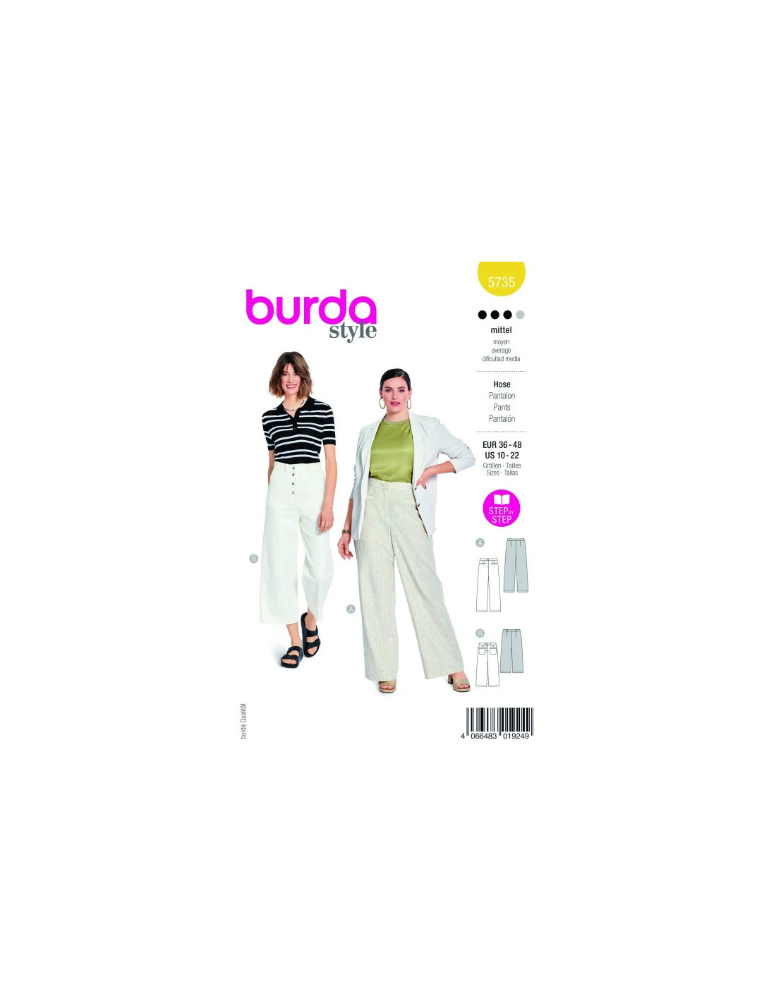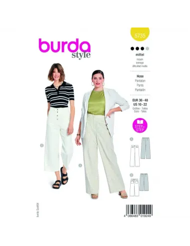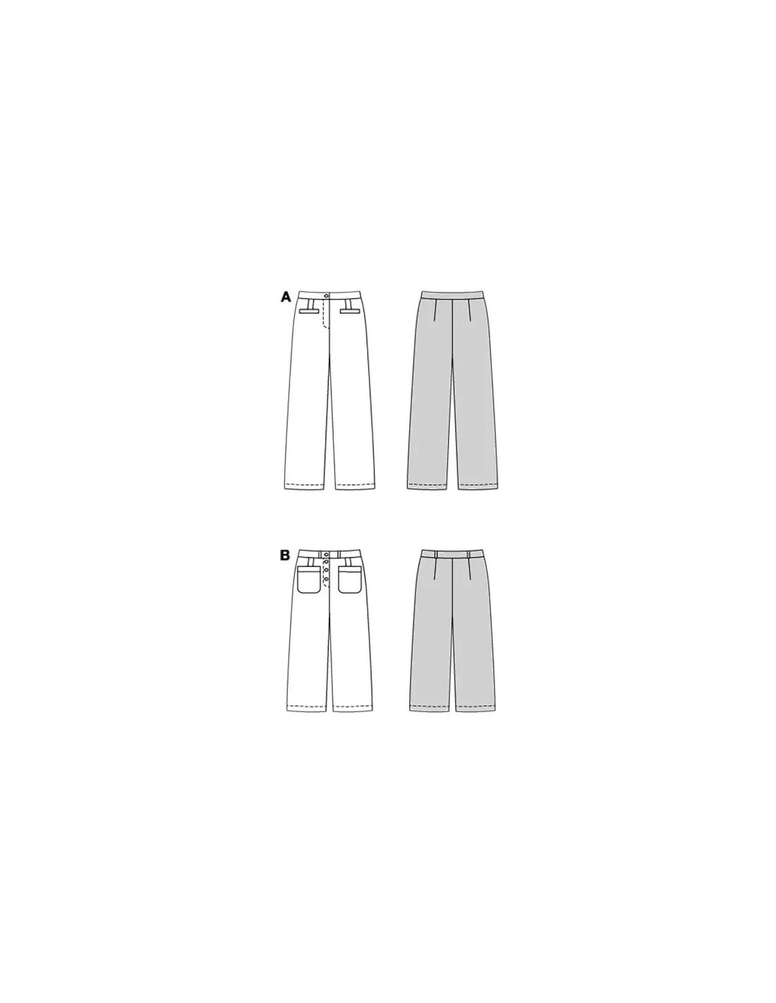 Parfait pour l'été : ce patron de pantalon burda style propose deux variantes. Le pantalon en lin à coupe droite avec poches passepoilées est léger et élégant – idéal pour le bureau. Associé à un blazer, il se transforme en un ensemble d'été décontracté. La deuxième variante, un jean 7/8 avec patte de boutonnage et poches plaquées, dégage un charme intemporel des années 70 et s'intègre parfaitement dans ta garde-robe !