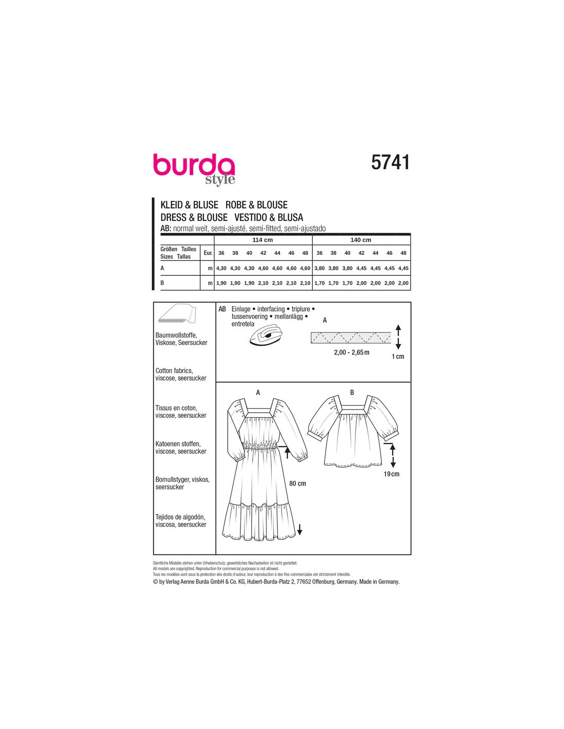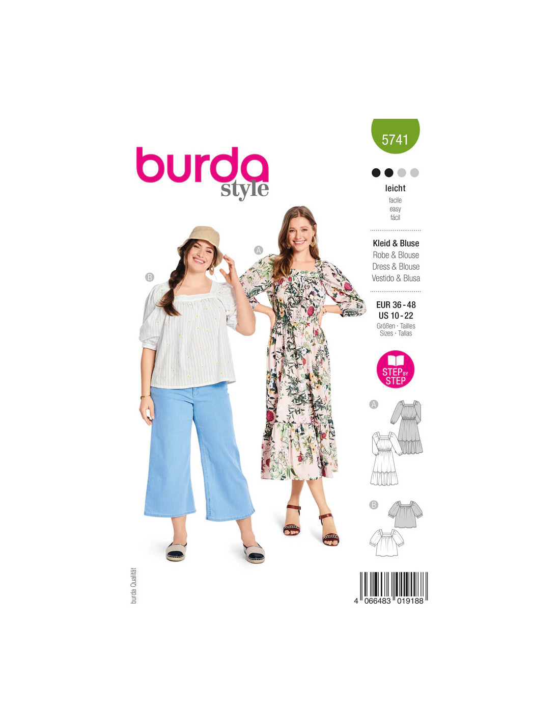 Découvre avec ce patron de blouse et de robe burda style un look moderne qui ravira les couturiers avancés ! Les deux variantes allient des manches raglan volumineuses, une taille smockée et une grande volant en bas pour une ambiance hippie tendance dans un voile contemporain. La blouse paysanne avec un décolleté carré et des manches raglan romantiques est le parfait point fort aérien pour chaque occasion !