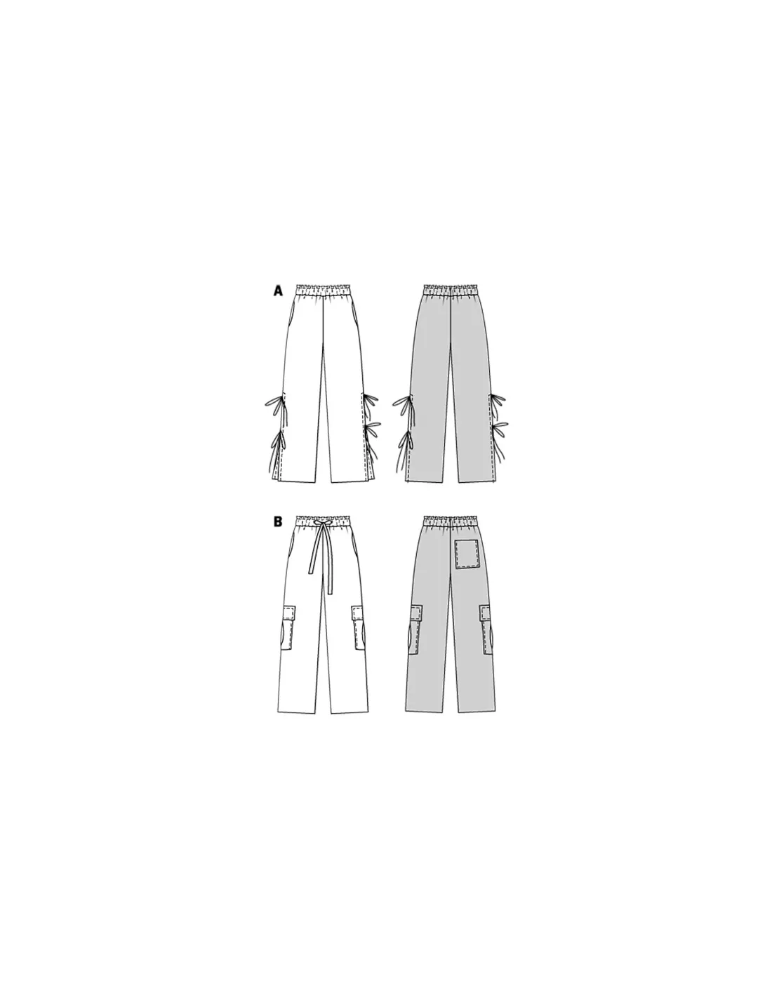 Prépare-toi à des styles excitants avec ce patron de pantalon burda style ! Les deux variantes te proposent des options passionnantes : la première est aussi confortable que des pantalons de sport, mais se distingue par de hauts fentes latérales maintenues par des liens en tissu du pantalon qui laissent entrevoir subtilement la peau. La deuxième variante apporte un facteur mode aux pantalons cargo avec des poches XL et un bandeau amusant. Parfait pour les passionnés de couture qui souhaitent être stylés au printemps et en été !
