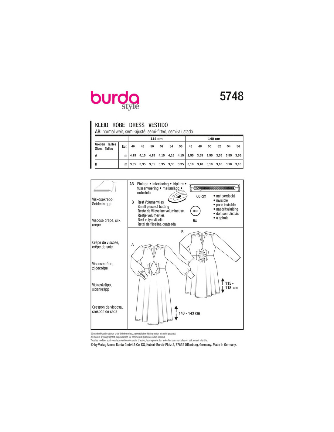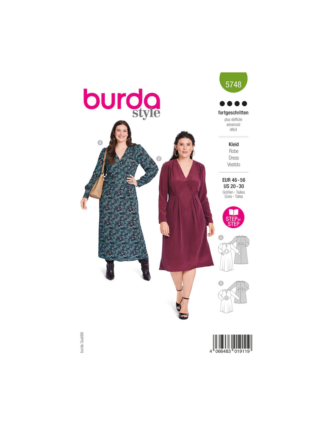 Apporte de la fraîcheur à ta garde-robe de printemps avec ce patron de robe burda curvy ! Les deux variantes offrent une élégance féminine et des détails inspirés de la couture. Le premier modèle séduit par son imprimé floral à la mode et son empiècement en losange qui fronce les plis à la taille. La deuxième variante se distingue par un losange cousu plusieurs fois et des plis qui s'ouvrent, formant une silhouette magnifique. Parfait pour les passionnés de couture expérimentés !