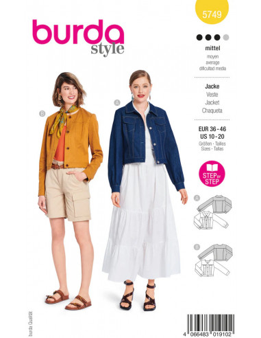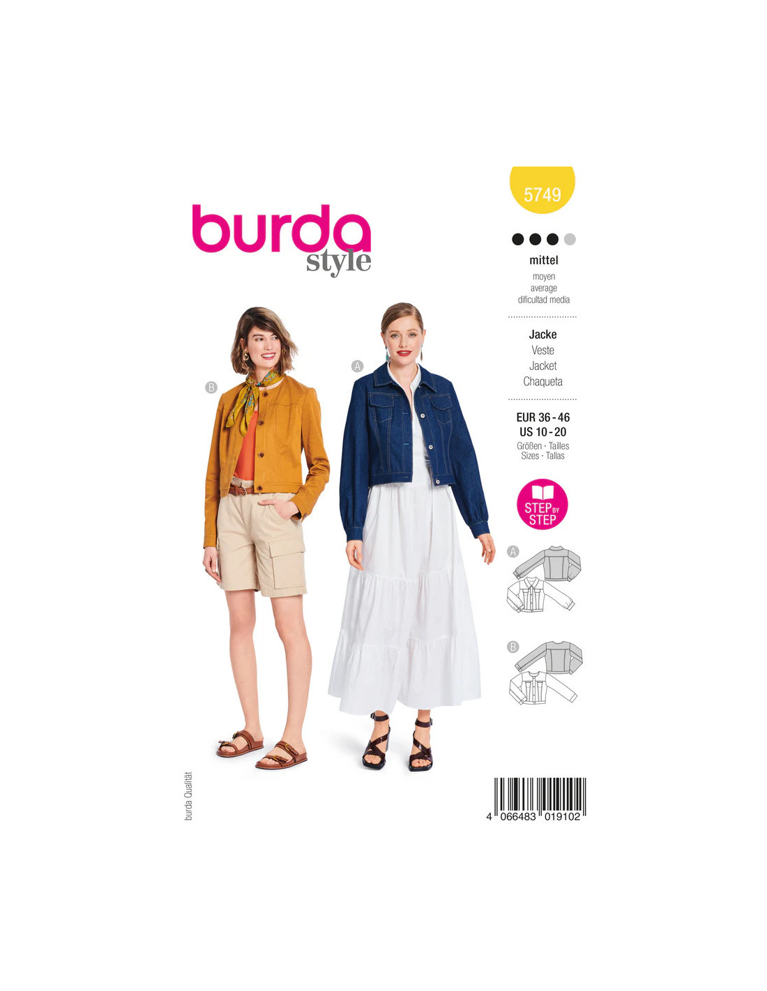 Découvre le compagnon parfait pour le printemps avec ce patron de veste burda style ! Les deux variantes te proposent des options stylées : la première est une veste en jean classique avec un col rabattu, des poches avant et des manches froncées qui réinterprètent le modèle original. La deuxième variante rappelle les vestes en daim décontractées des années 70 avec de larges parements matelassés et des boutons en imitation corne. Fabriquée en coton facile d'entretien, elle a également fière allure en cuir. Idéal pour les passionnés de couture créatifs !