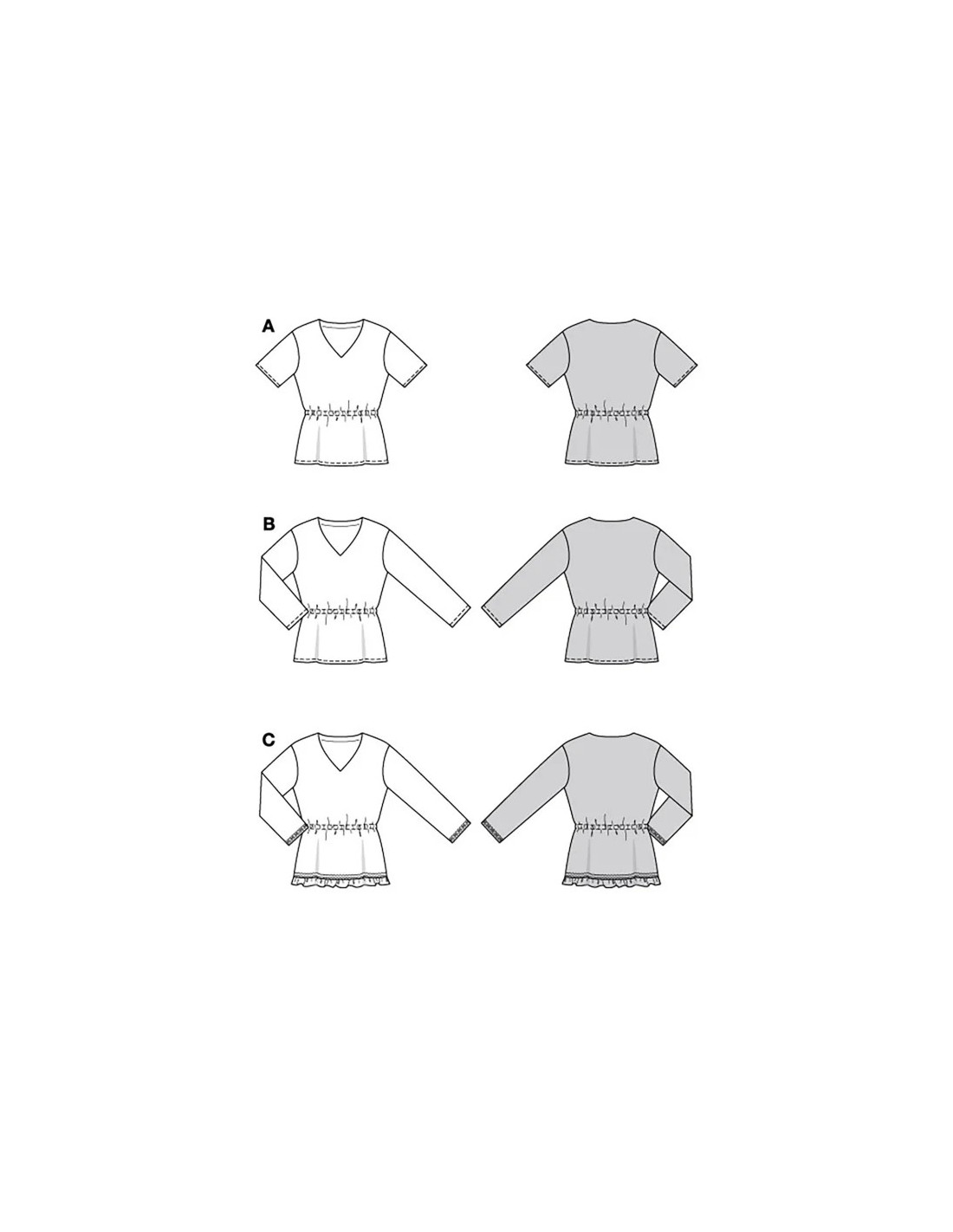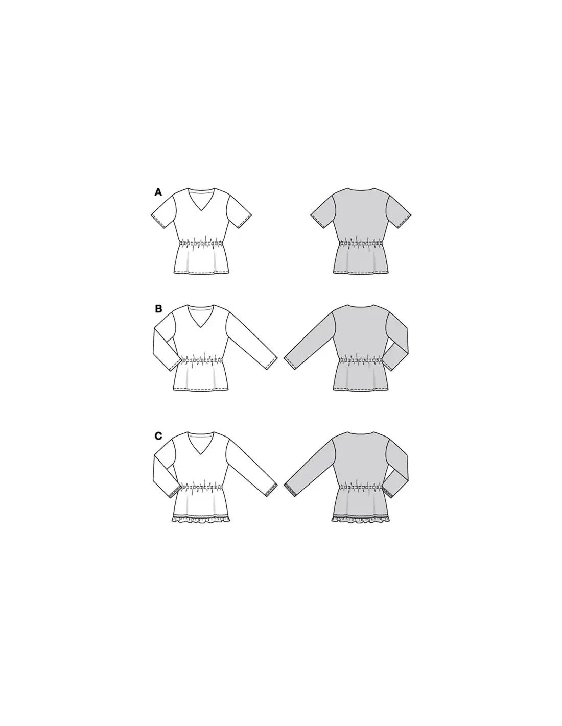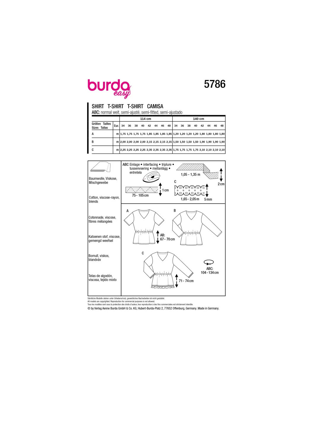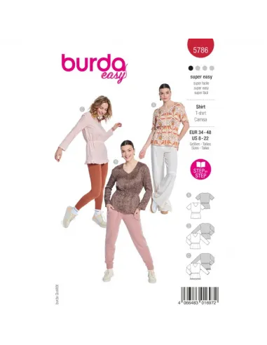 Notre patron de chemise pour femme propose trois styles uniques à coudre : une jolie nuisette en satin-viscose à motifs, un élégant t-shirt léopard en satin-viscose et un délicat t-shirt à volants avec dentelle décorative. Parfaites pour toutes les occasions et toutes les tenues. Couse-les en satin viscose à motif mini-léo pour une touche d'élégance. Un trio indispensable pour ta garde-robe ! Mercerie: ABC : entoilage thermocollant, élastique, largeur 1 cm : 75 - 105 cm, biais, largeur 2 cm : 1,05 - 1,35 m. C : ruban de dentelle, largeur 5 mm : 1,65 - 2,05 m.