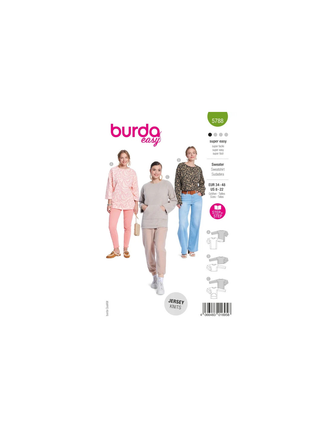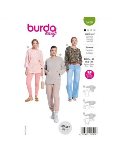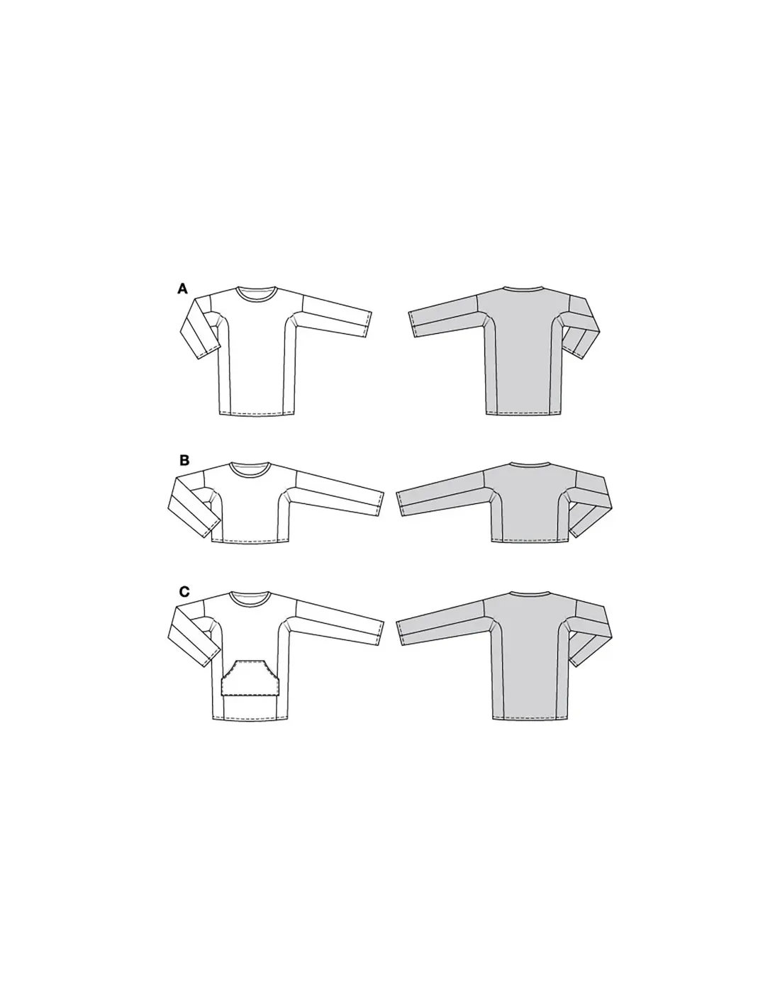 Découvre la diversité avec notre patron de sweat pour femme ! Qu'il s'agisse d'un t-shirt long décontracté à manches 3/4 pour des vibrations positives, d'un cropped shirt chaud avec un imprimé animalier ou d'un pull en tricot douillet avec une poche plaquée - ces trois variantes offrent ce qu'il faut pour tous les goûts. Cousus en jersey, en tricot, en french terry ou en polaire, ils garantissent à la fois confort et style. Mercerie: Aiguille jumelée