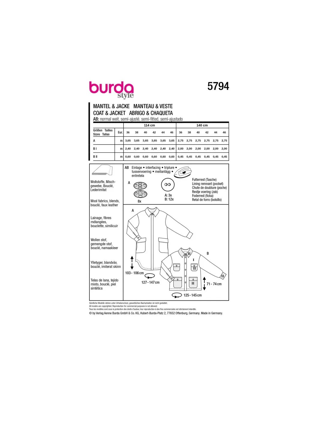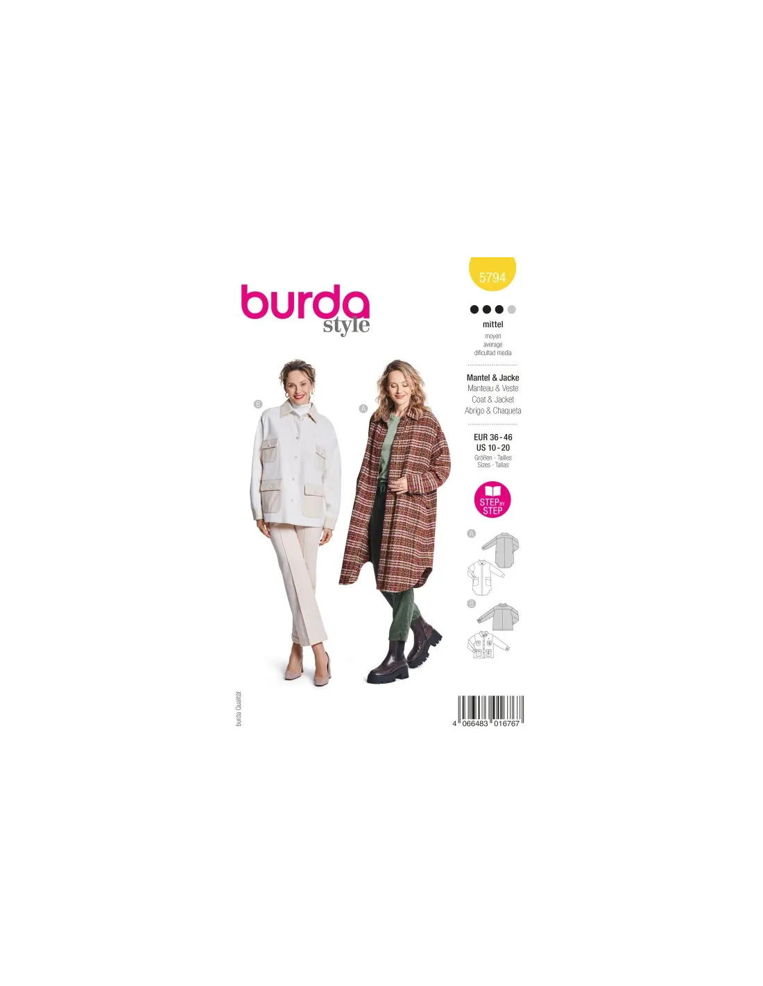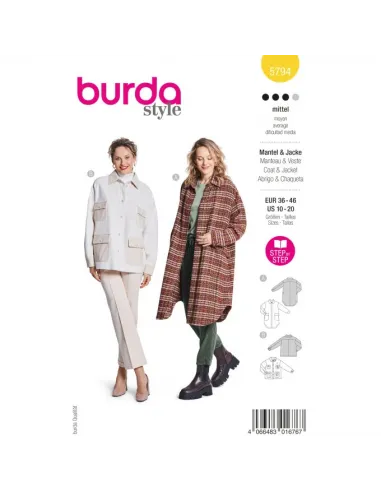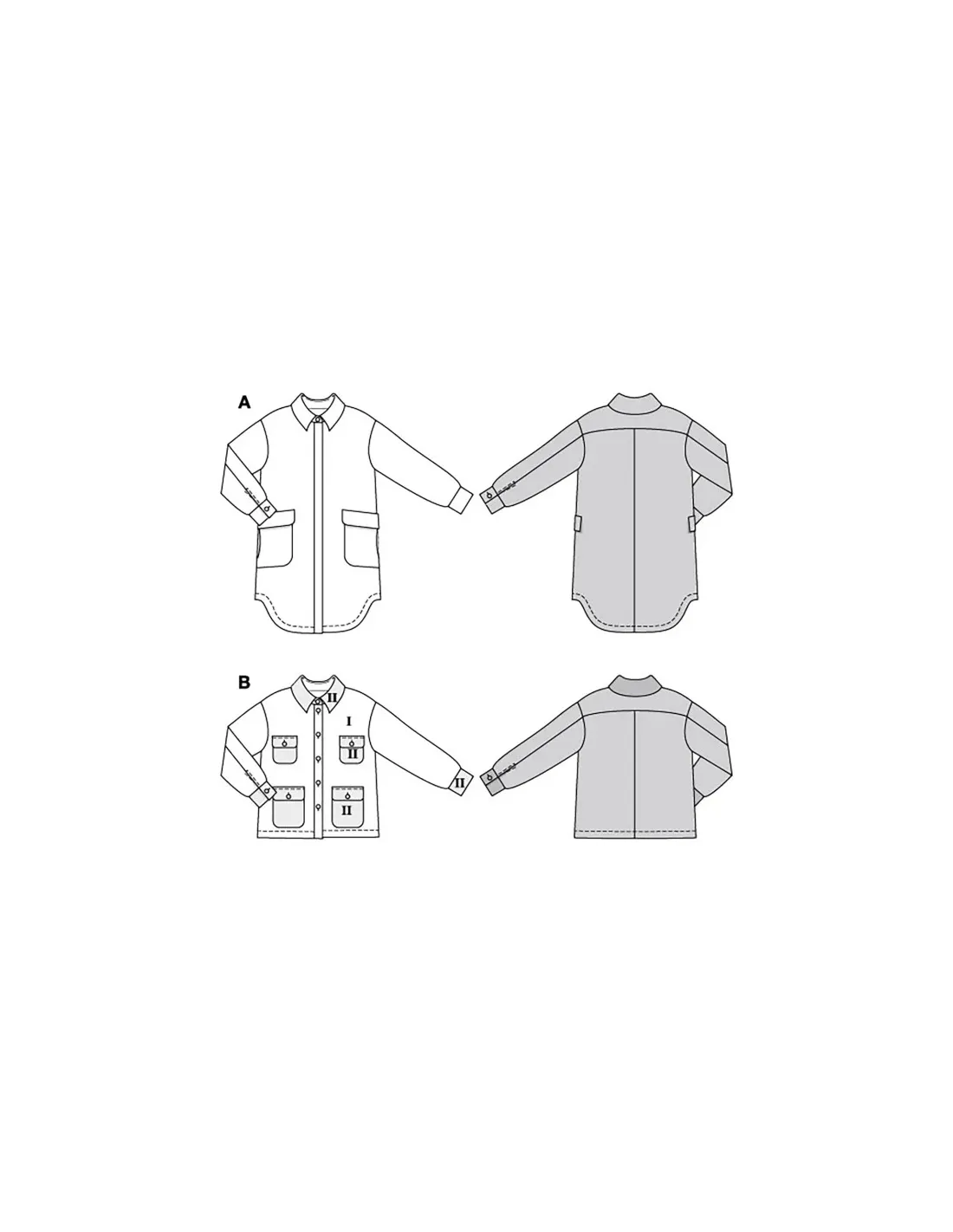 Crée le chic décontracté avec notre manteau douillet pour femme, aussi confortable que ta couverture en laine préférée. Avec ses grandes poches plaquées et sa patte de boutonnage cachée, il est le compagnon idéal pour l'automne. Ou opte pour notre veste au style utilitaire cool avec des poches et des accents marqués. Idéal pour les lainages, les tissus mélangés, le bouclé ou le similicuir. Mercerie: AB : entoilage thermocollant. A : 8 boutons-pression à coudre, 3 boutons. B : 12 boutons.