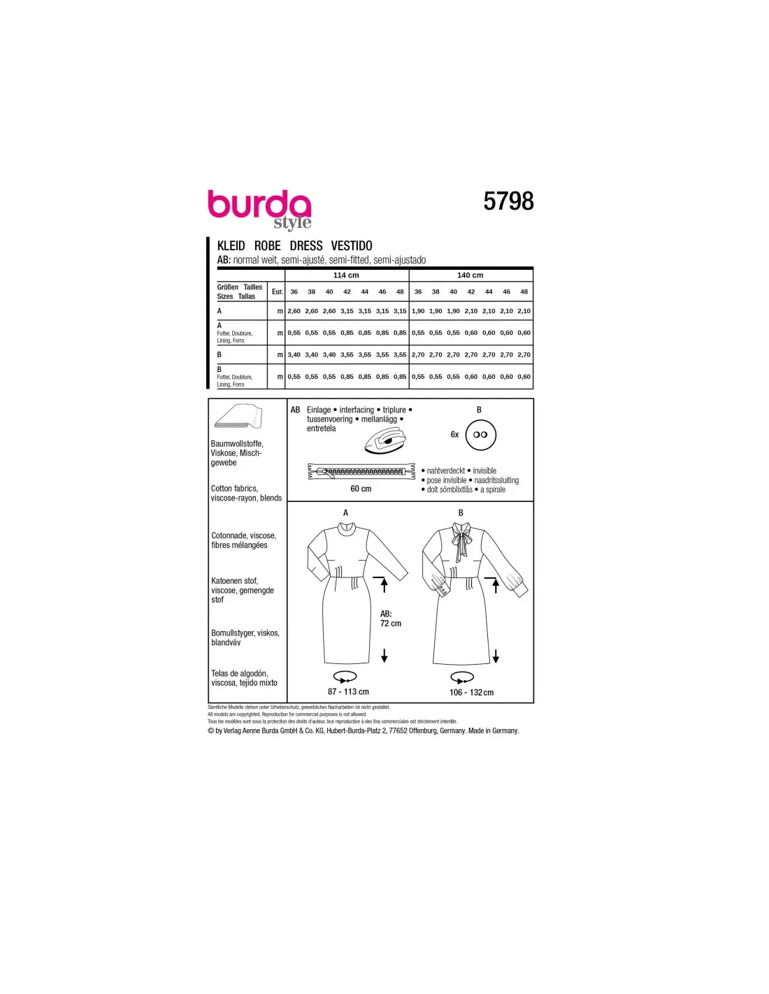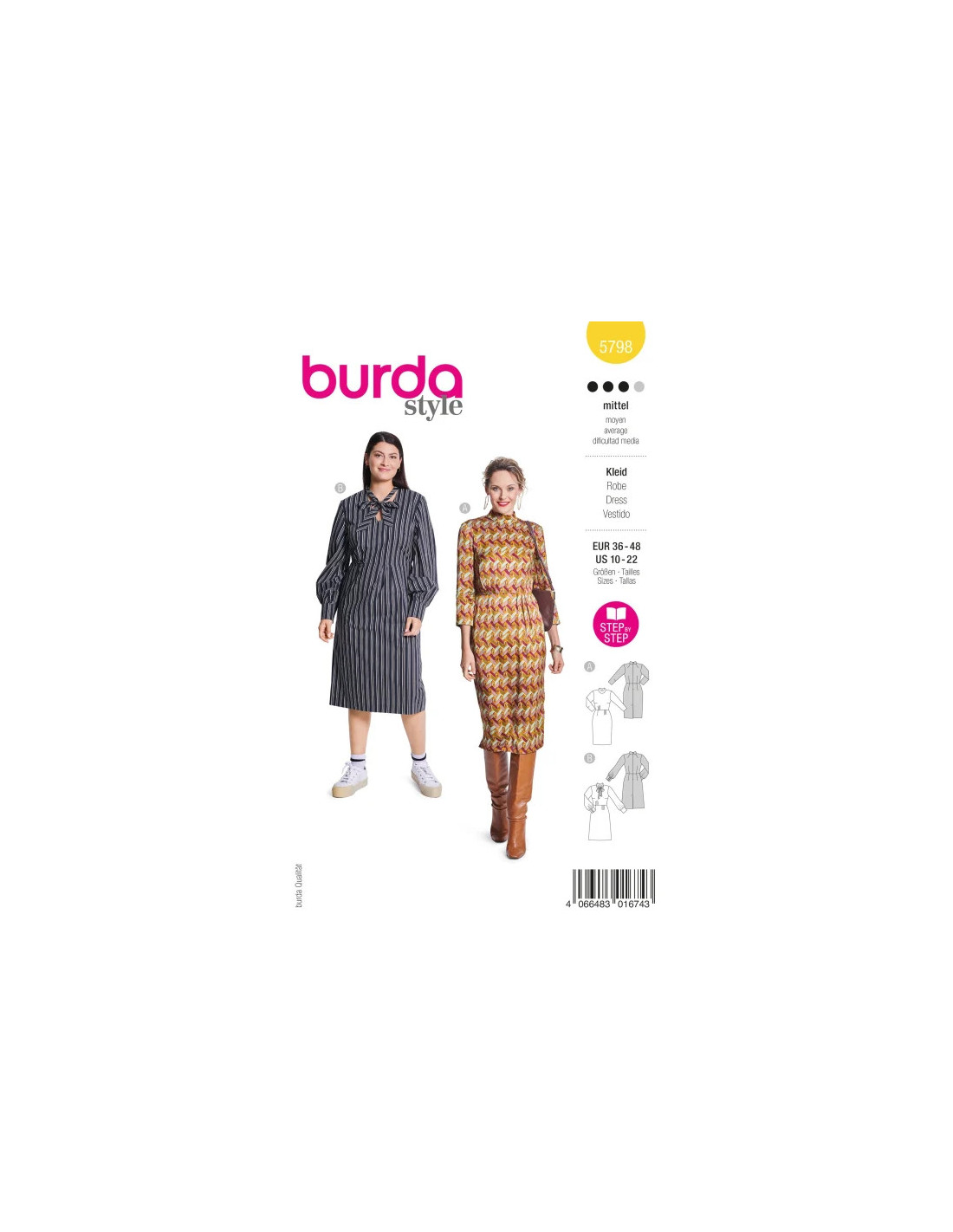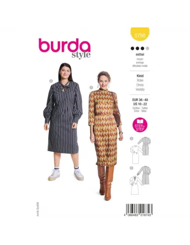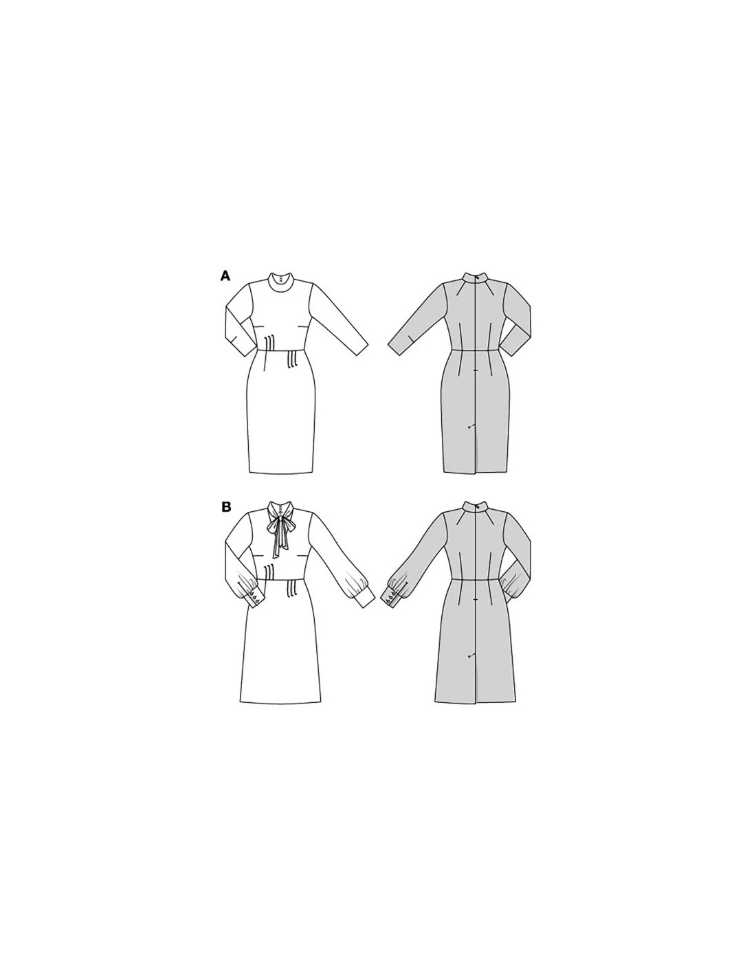 Découvre nos patrons de robes pour femmes avec deux variantes de coupe ! La robe vintage, longue jusqu'au genou, avec un col montant et des manches raccourcies, allonge la silhouette de manière optimale et la met en valeur. La ceinture de montage en chutes de tissu apporte un charme supplémentaire. Tu peux aussi opter pour notre robe à pinces au ravissant effet drapé grâce à ses plis inversés. Parfaite en coton, en viscose ou en tissu mélangé. Mercerie: AB : entoilage thermocollant, fermeture à glissière invisible de 60 cm. B : 6 boutons.