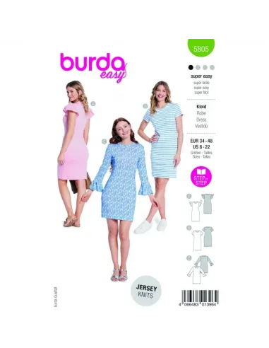 Des looks d'été stylés de burda easy à coudre soi-même ! La robe en jersey à volants en voile qui flatte la silhouette, l'indémodable chemise à anneaux en forme de mini-robe et la robe en t-shirt bleu clair à l'imprimé tigré et aux vibrations sixties. Trois patrons de robes polyvalents pour toutes les occasions - et ce au niveau de couture 1 ! Tissus recommandés: uniquement les tissus jersey élastiques, A II : voile. Mercerie nécessaire: Aiguille jumelée