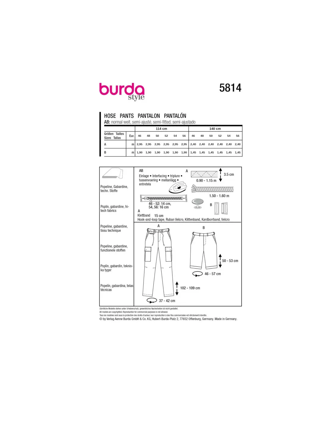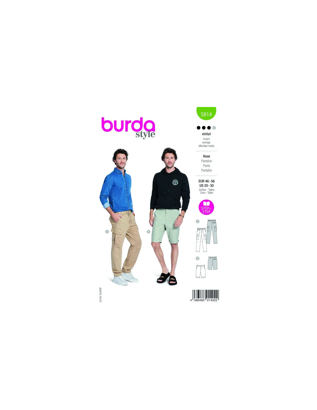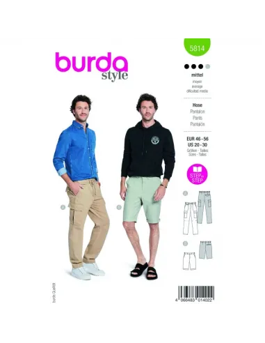 Des pantalons qui vont bien ! Avec burda style, tu peux facilement coudre ton pantalon toi-même. Notre kit de couture (niveau de couture 3) contient des pantalons avec des poches de XS à XL, une taille élastique et des plis au niveau des genoux. Les coutures sont surpiquées. Ils sont complétés par des bermudas classiques et modernes avec des passants de ceinture et des poches pratiques. Tu peux les raccourcir à volonté. Deux coupes de pantalons polyvalentes dans un seul set ! Tissus recommandés: Popeline, gabardine, tissus techniques. Mercerie nécessaire: A : doublure, élastique 3,5cm, cordelette, fermeture éclair, bouton-pression, velcro; B : Insert, crochet pour pantalon