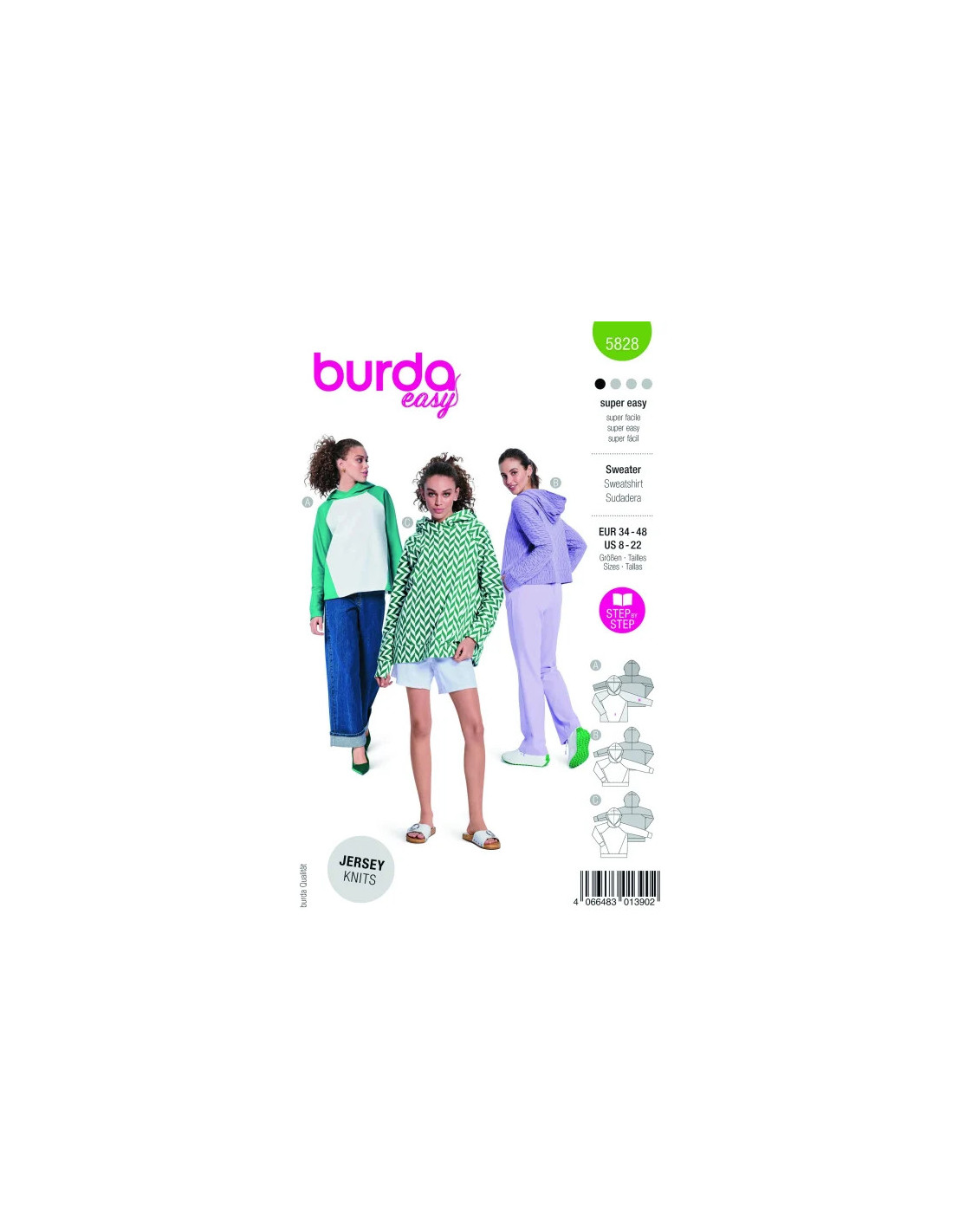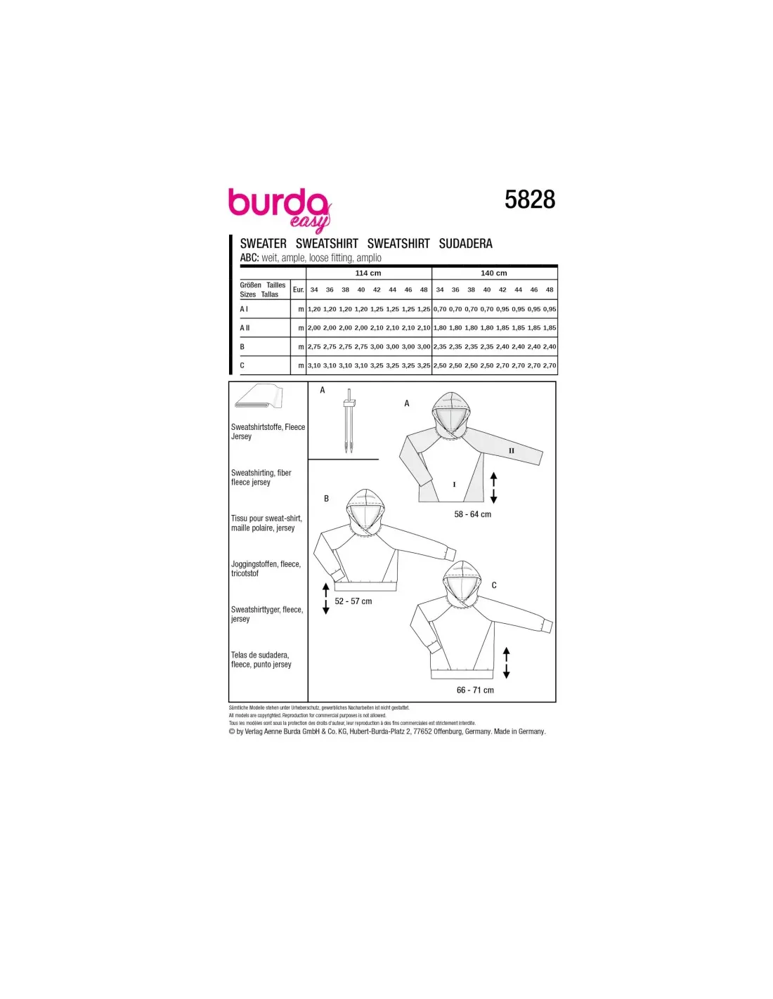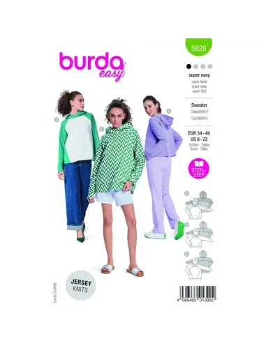 Ces patrons burda easy Must-haves sont polyvalents et conviennent à tout le monde. Le patron du t-shirt universitaire est un basique très tendance, mais le hoodie cropped sportif et le hoodie oversized à la coupe longue conviennent aussi à tout le monde. Tous les patrons sont faciles et rapides à réaliser soi-même et conviennent d'ailleurs parfaitement comme pièces unisexes. Tissus recommandés: Tissus de sweat-shirt, polaire, jersey. Mercerie nécessaire: A : Aiguille jumelée