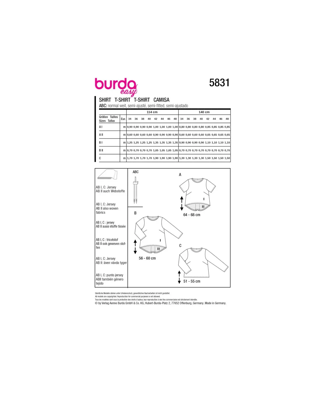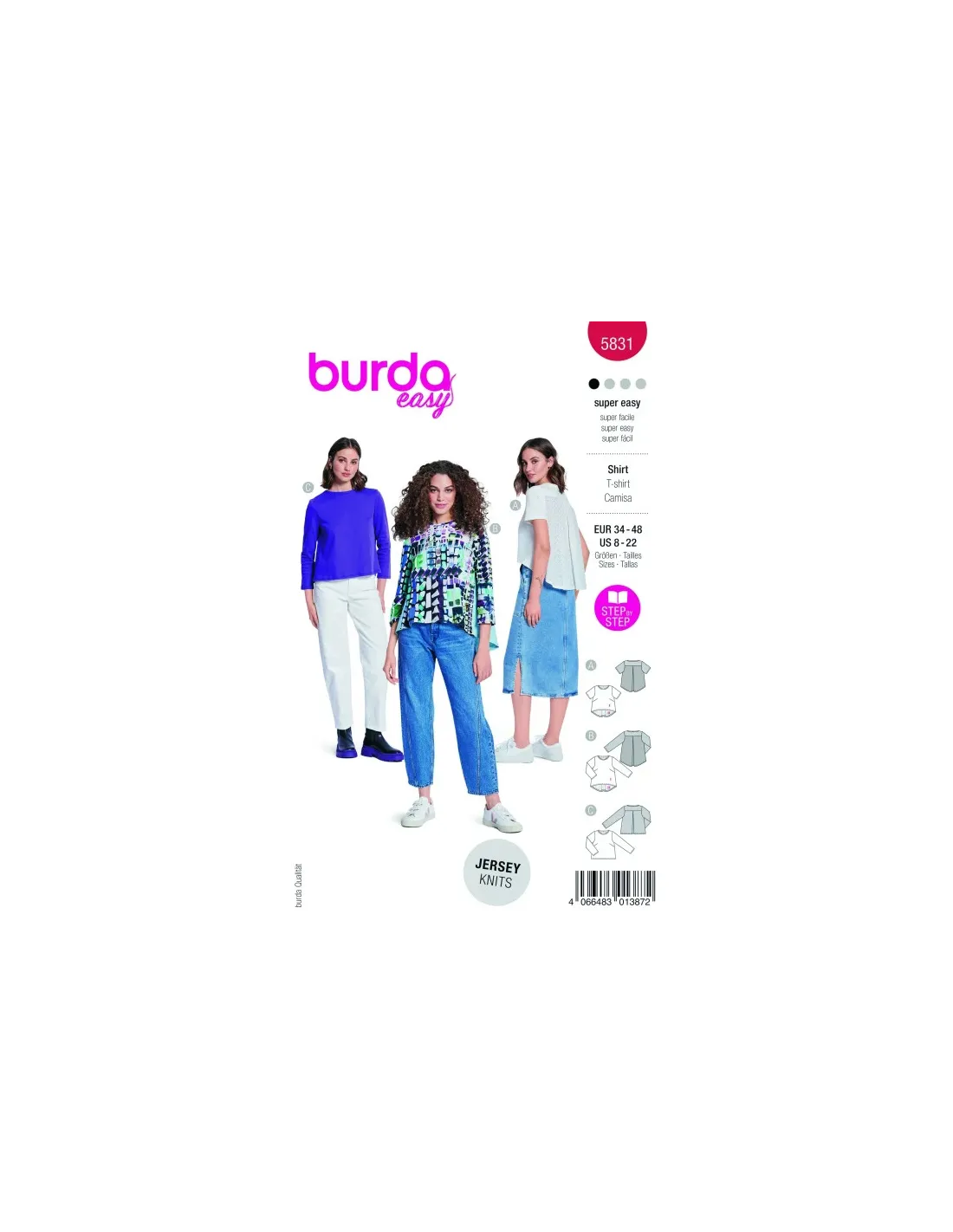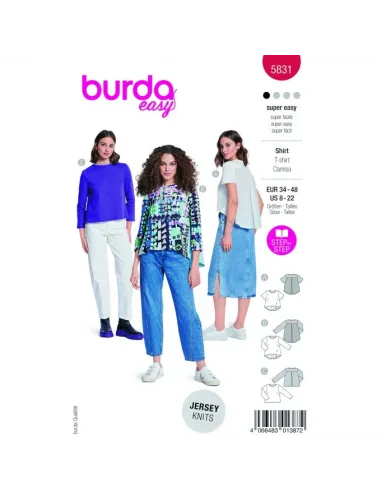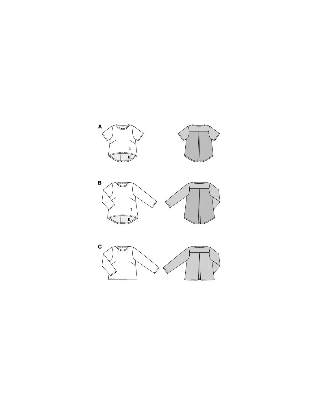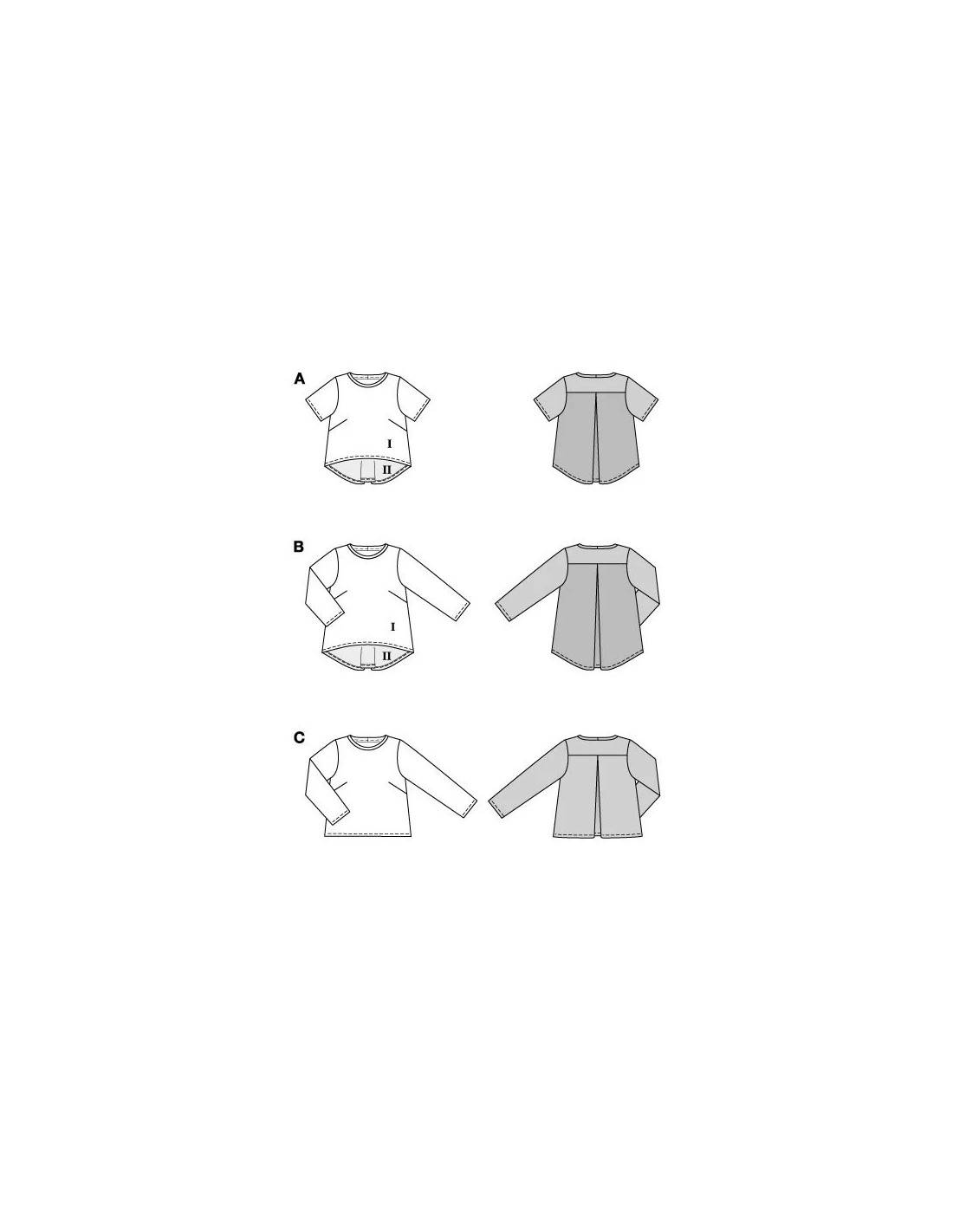Manches courtes ou longues, à motifs ou unis - nos patrons de t-shirts polyvalents offrent un chic estival. Le pli dans le dos est un détail sympa qui transforme rapidement un t-shirt prétendument basique en une légère tunique d'été. Grâce à nos patrons burda easy, tu peux confectionner toi-même ces superbes pièces estivales en un rien de temps ! Tissus recommandés: AB I, C : Jersey, AB II aussi tissus tissés. Mercerie nécessaire: ABC : Aiguille jumelée