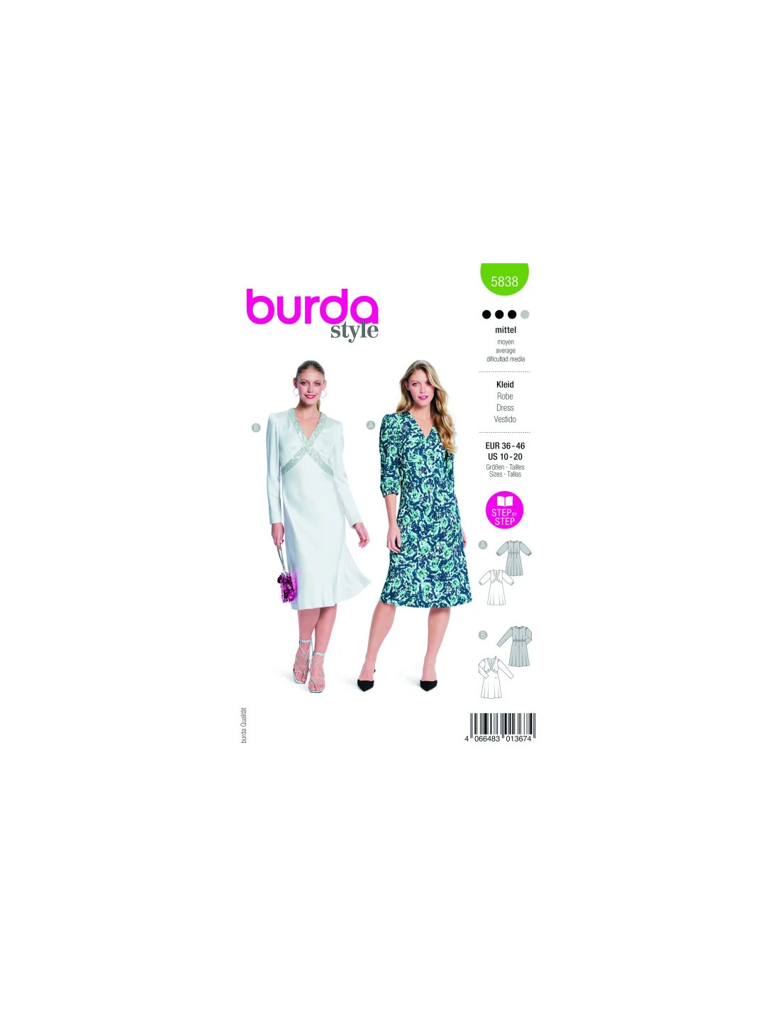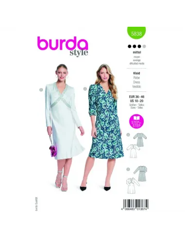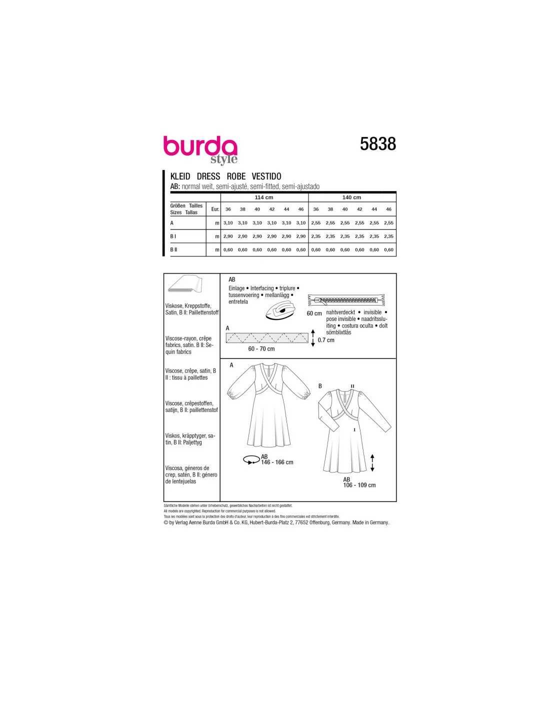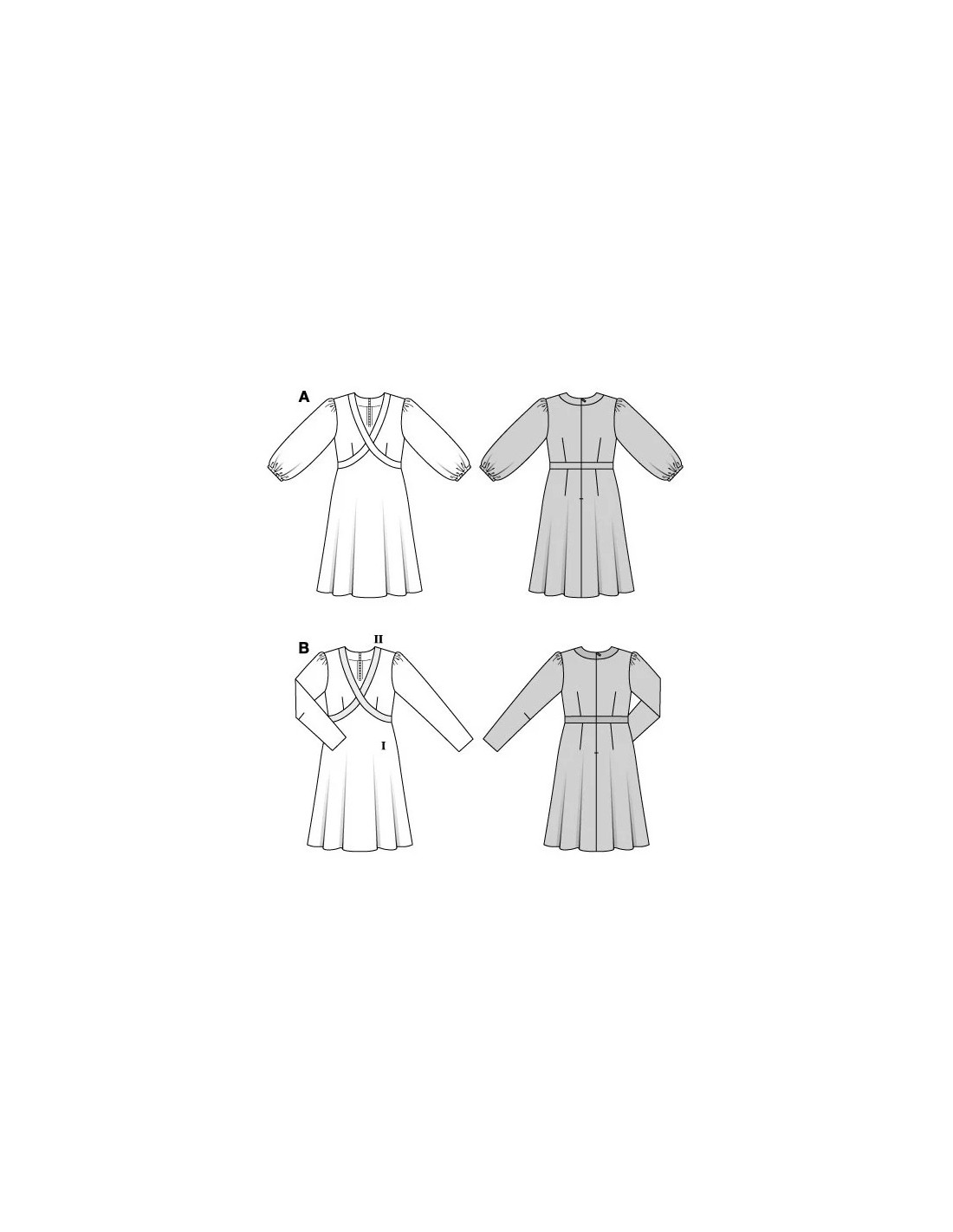 Une robe de rêve à longueur de genou avec des manches volumineuses ou plutôt une robe élégante avec des manches légèrement bouffantes ? Avec ce jeu de patrons, tu obtiens les deux en un ! Grâce à leur effet sur la taille jusqu'à l'encolure, les panneaux croisés créent une véritable silhouette de rêve. Laisse-toi inspirer par ces superbes patrons burda style et couds-les toi-même en toute simplicité ! Tissus recommandés: Viscose, crêpe, satin, B II : Tissu à paillettes. Mercerie nécessaire: A : insert, caoutchouc 0,7, B : insert
