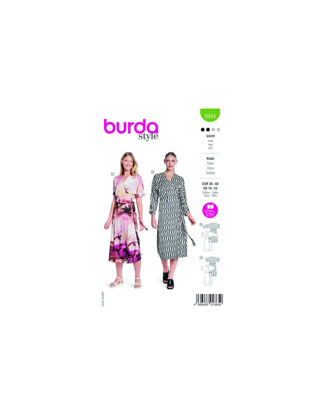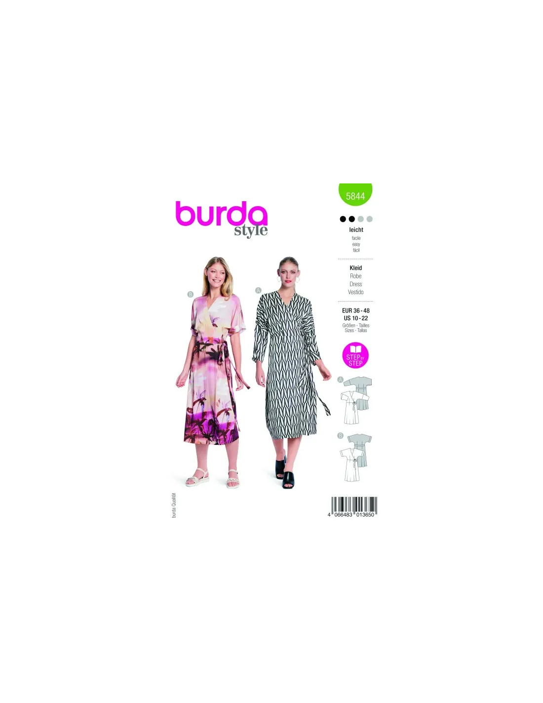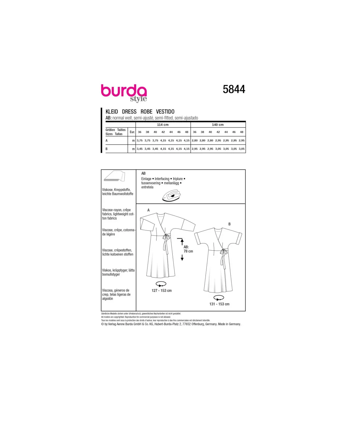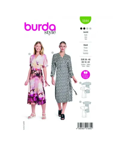 Les robes portefeuille flattent toutes les silhouettes grâce à leur coupe particulière. Les deux patrons de ce set offrent, malgré une longueur de manches différente, des manches coupées pour des épaules particulièrement étroites. Avec le niveau de difficulté 2 de burda style, ces patrons conviennent également aux débutantes* et convainquent dans les tailles dames jusqu'à 48. Tissus recommandés: Viscose, crêpe, coton léger. Mercerie nécessaire: AB : dépôt