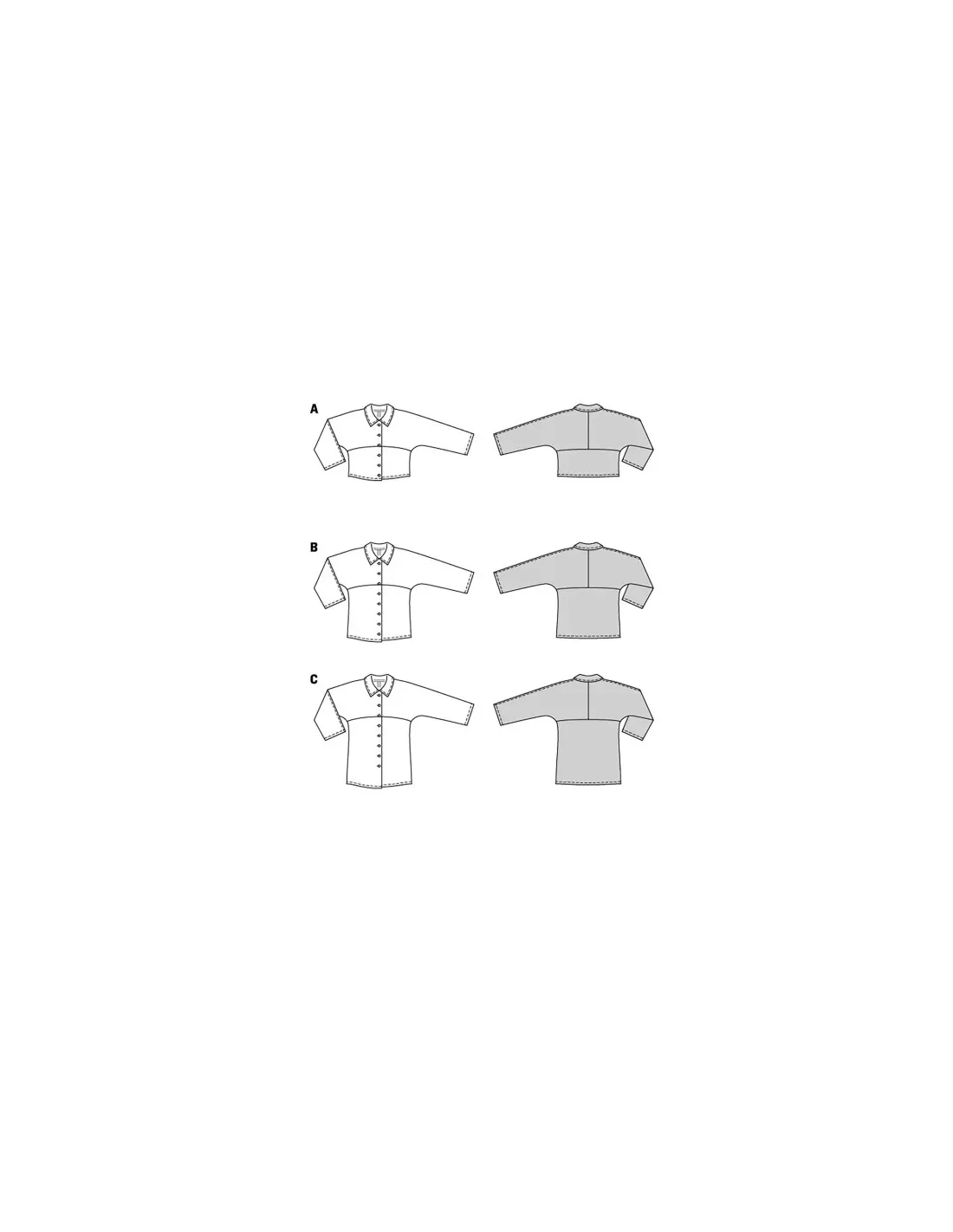Déclinée en diverses longueurs, cette chemise ne présente aucune difficulté et sera cousue en un clin d'œil. Les manches sont coupées à même les devants et se passent de poignets. Avec un col classique et une fermeture boutonnée, elle est indispensable dans toutes les armoires.