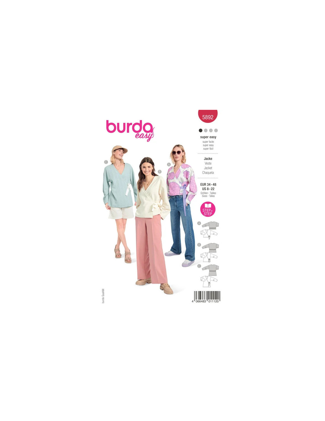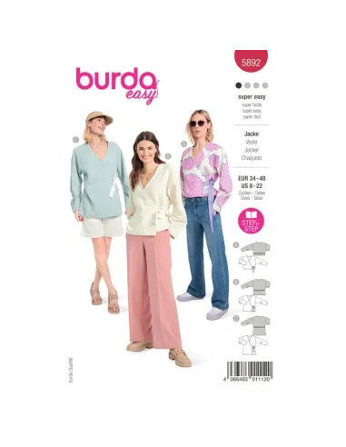 Des vestes cache-cœur légèrement cintrées dans une optique nette qui se ferment très classiquement avec des liens à nouer. Les manches sont joliment mises en forme par des pinces. Ces trois modèles sans col dans différentes longueurs mettent les tissus fétiches bien en valeur.
