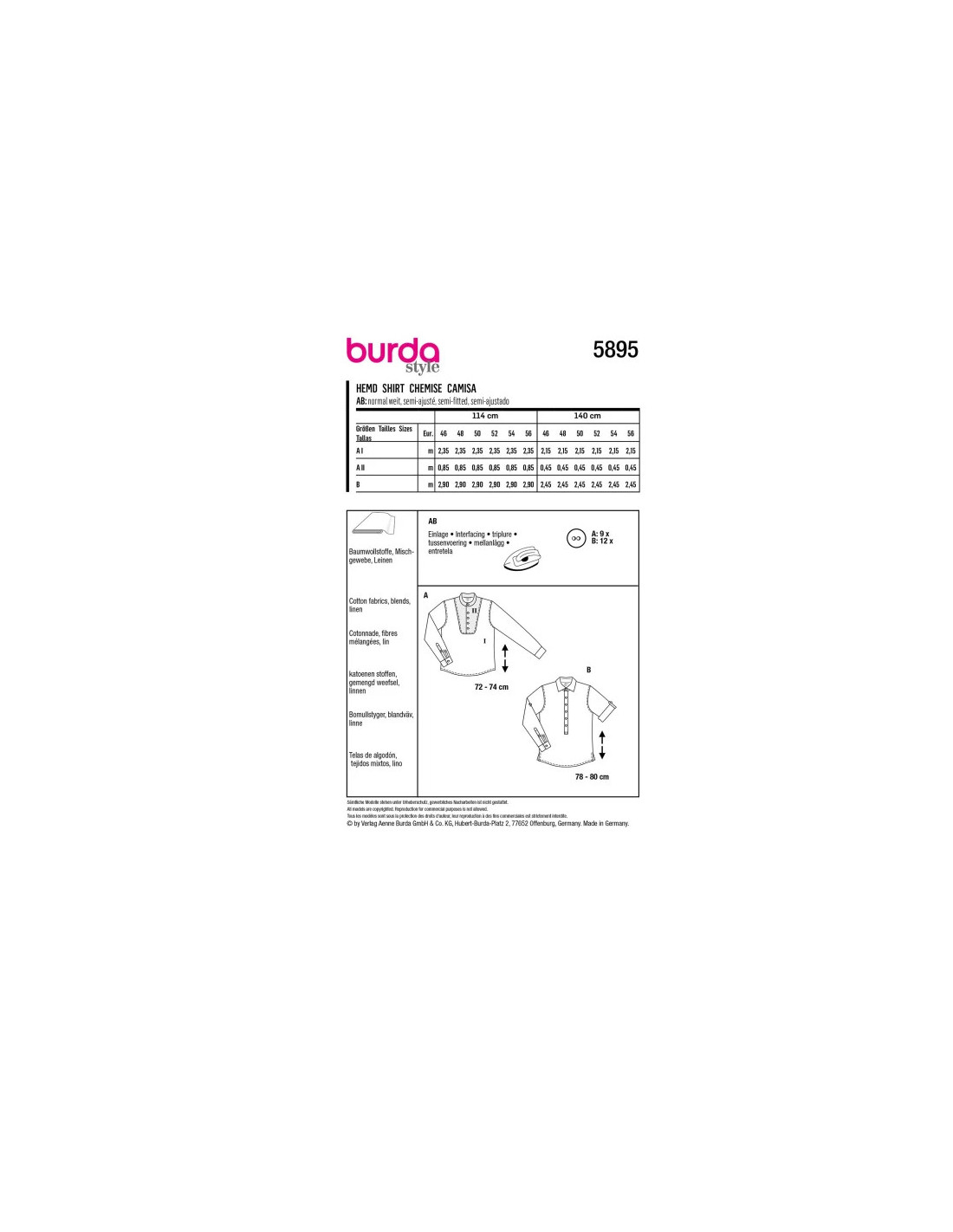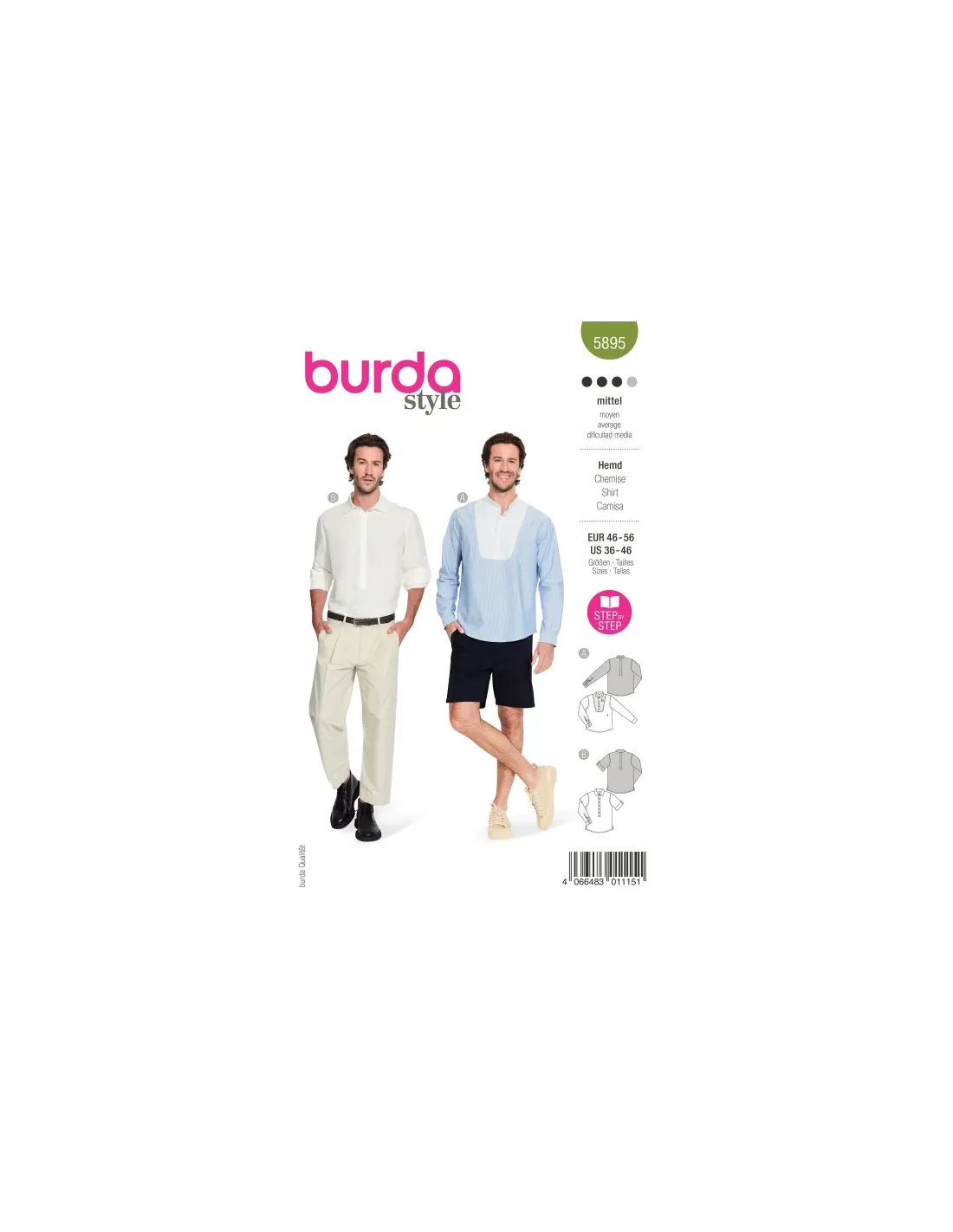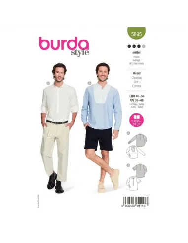 Des chemises confortables à enfiler pour lui. A avec plastron et col montant, B avec une patte polo et un col classique avec pied de col. Sur les deux variantes, les fentes complexes créent un détail soigné.