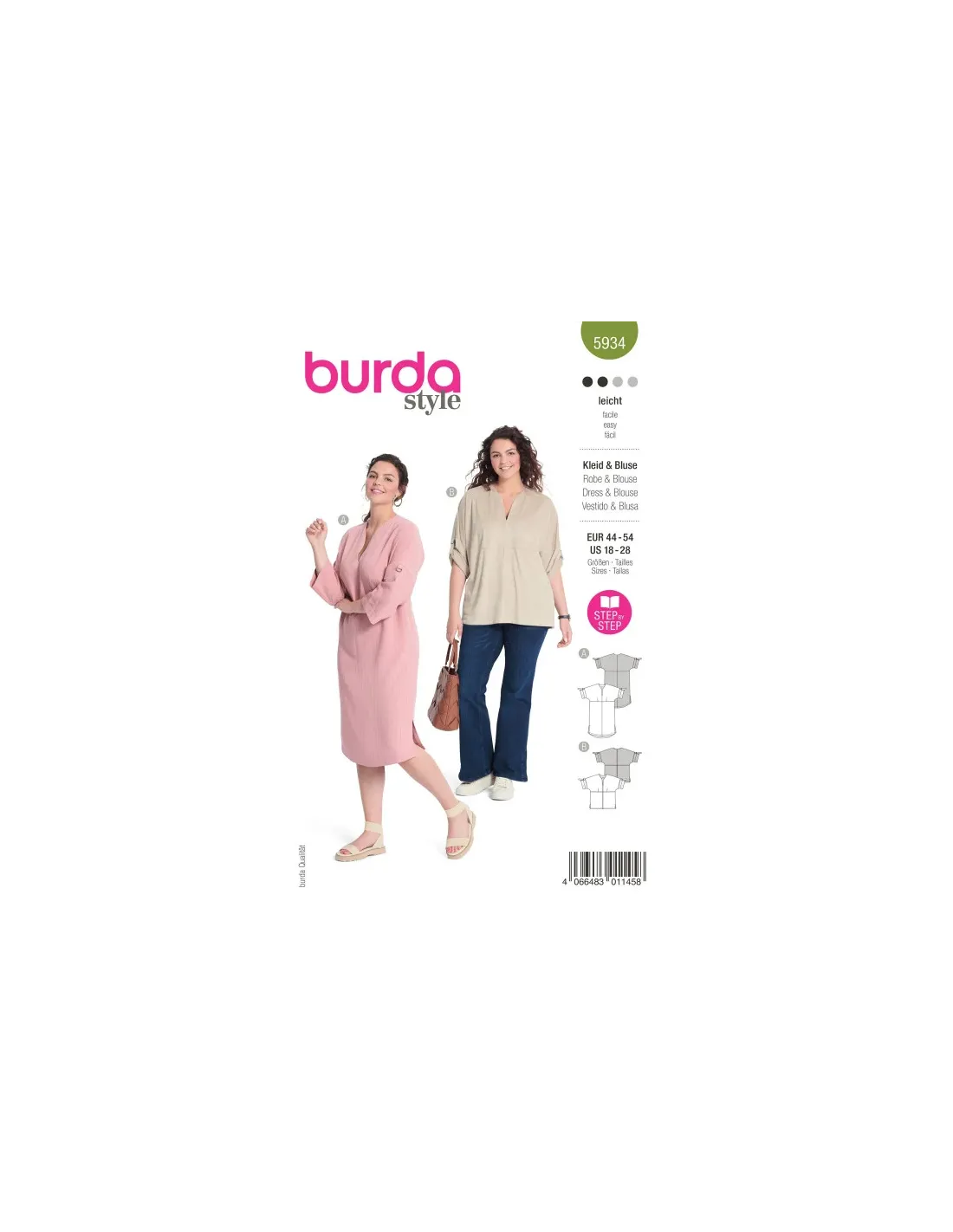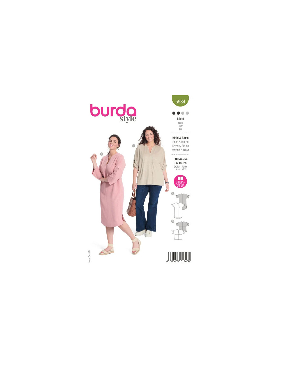 Des articles bien stylés autant pour les loisirs que pour le bureau. La robe et la blouse révèlent un joli décolleté et des manches à retrousser. La ligne droite fluide et les fentes latérales garantissent un confort optimal. La coupe se prête en outre parfaitement au travail du similicuir.