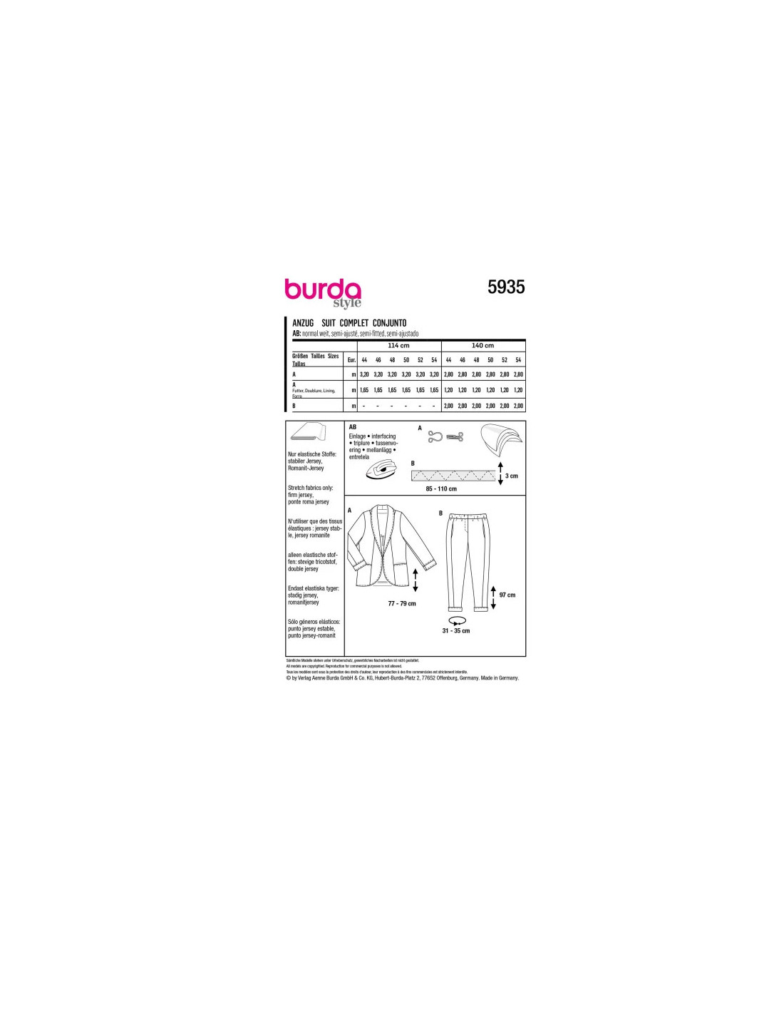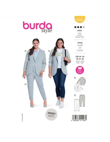 Un superbe costume féminin pour le bureau ou pour des évènements particuliers. Grâce à sa matière élastique. il est très agréable à porter. La veste a un long col châle et des bords devant arrondis. Les coutures de découpe du pantalon allongent la silhouette et dissimulent des poches.