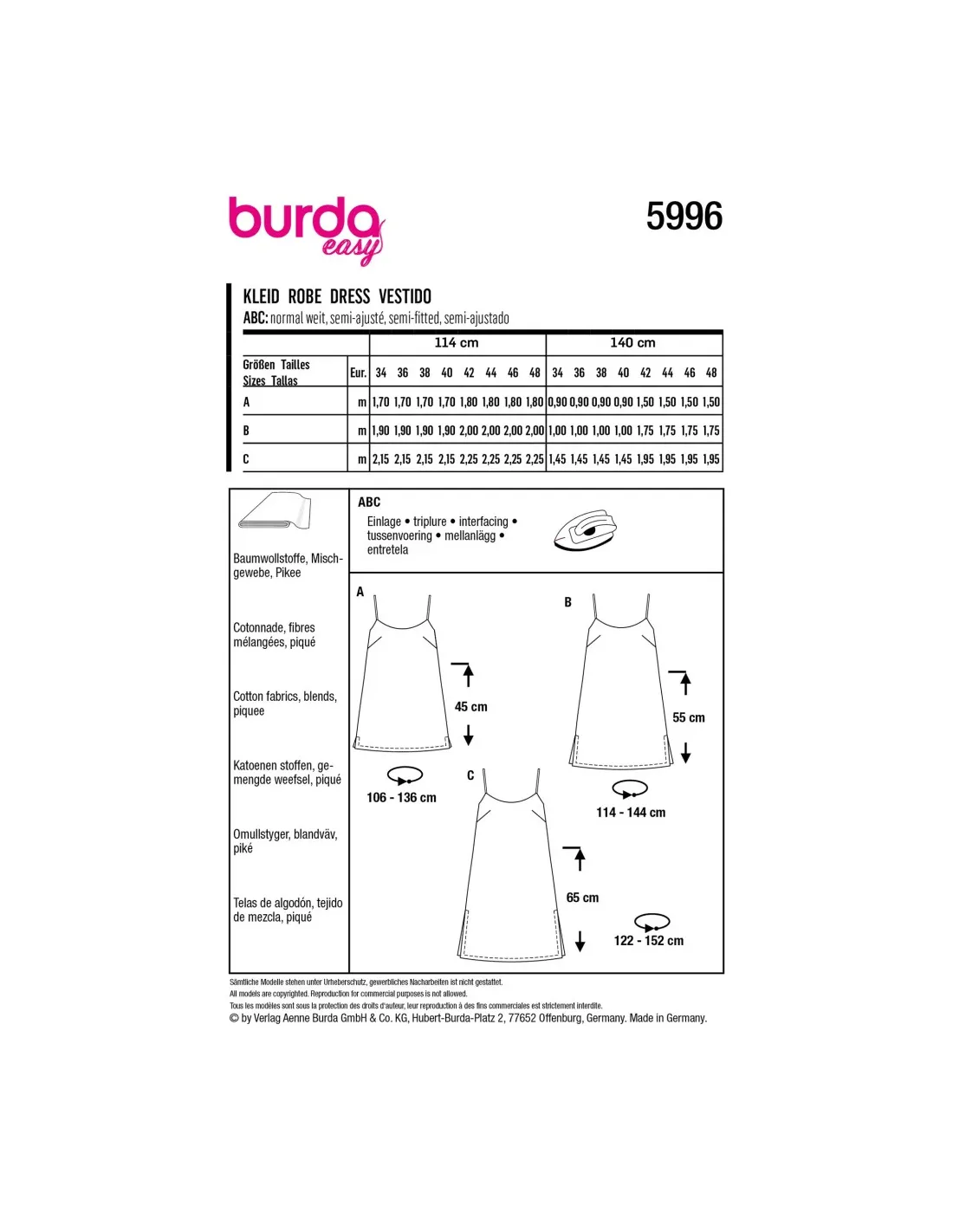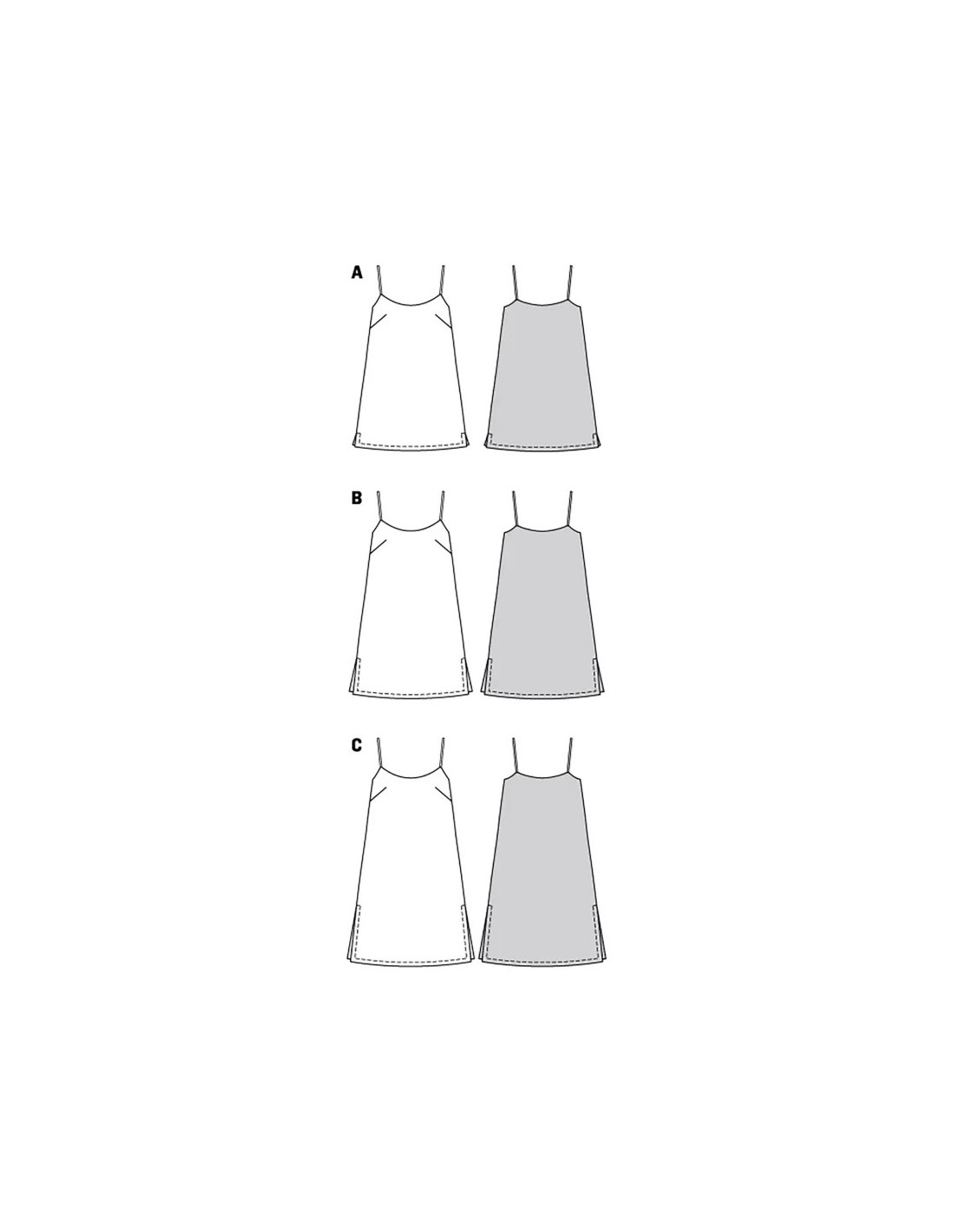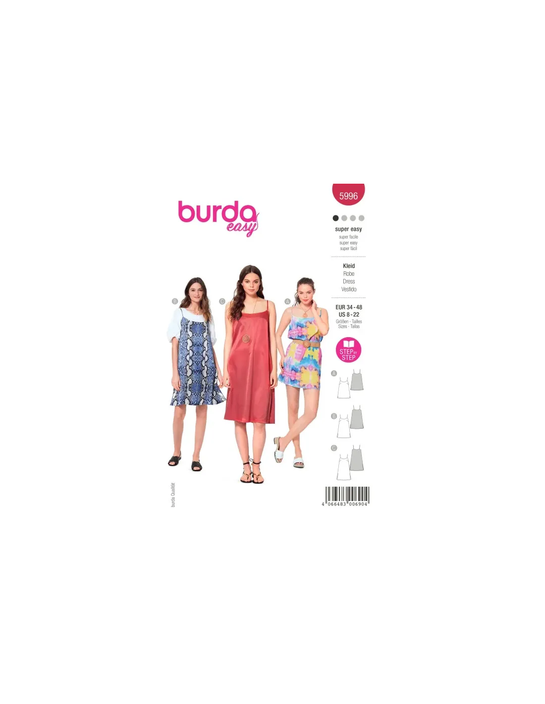 Cette coupe offre un éventail de possibilités : une robe en soie façon lingerie, une confortable robe à bretelles en cotonnade pour les belles journées estivales ou une petite robe de plage à porter sur un bikini. Facile et rapidement réalisée, c'est la seule robe dont la femme a besoin pour cet été.