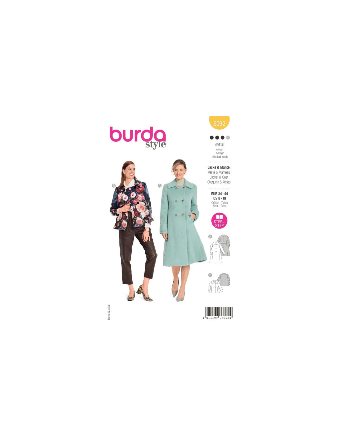 Des modèles féminins croisés au charme rétro. Le grand col Claudine du manteau évasé et de la veste longueur hanches retient toute l'attention. En les déboutonnant, on obtient de grands revers. Les découpes et les poches prises dans les coutures mettent la coupe en valeur.